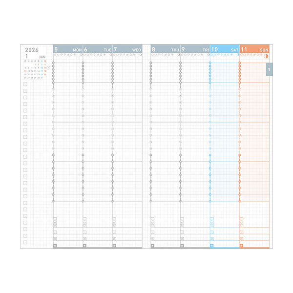 Life notebook is meant to last longer than through 2026 and can remain in the Jibun Techo cover indefinitely. It is made with the Kokuyo's premium MIO paper. It lets you keep information that you want to refer to over the years, such as life goals, family planning and even passwords. You can transfer all that information without having to rewrite it in a new planner every year.