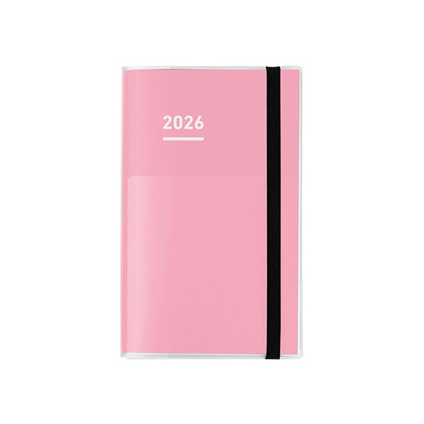 Kokuyo Jibun Techo First Kit mini Pink is a 2026 planner that contains three notebook, Diary, Life and Idea, in a soft clear cover lined with colored paper that has space to keep small things.