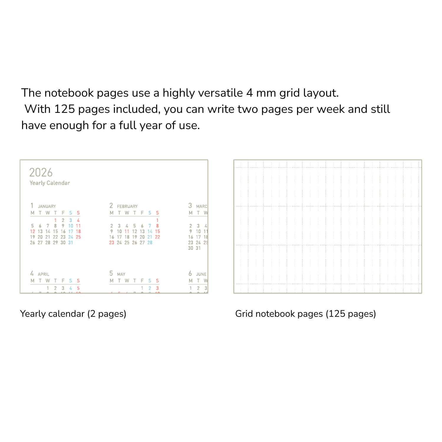 Like all notebooks in the Sooofa series, it uses Kokuyo’s exclusive soft ring binding that gently compresses under your hand, allowing smooth writing on both sides of the page. The planner lies completely flat, providing a comfortable and seamless writing experience anywhere.