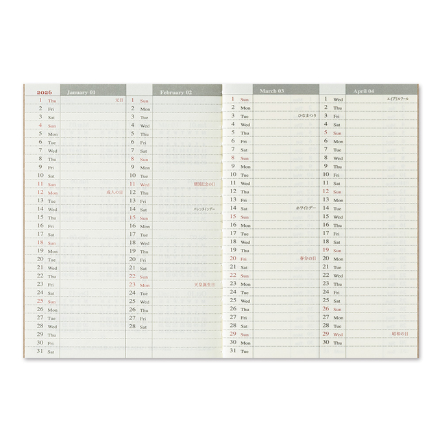 The Traveler's Notebook 2026 Weekly Passport Size is the ideal refill for those who want compact yet detailed weekly planning in the Passport format. Each week is spread across two pages, giving you a clear view of your daily schedule.