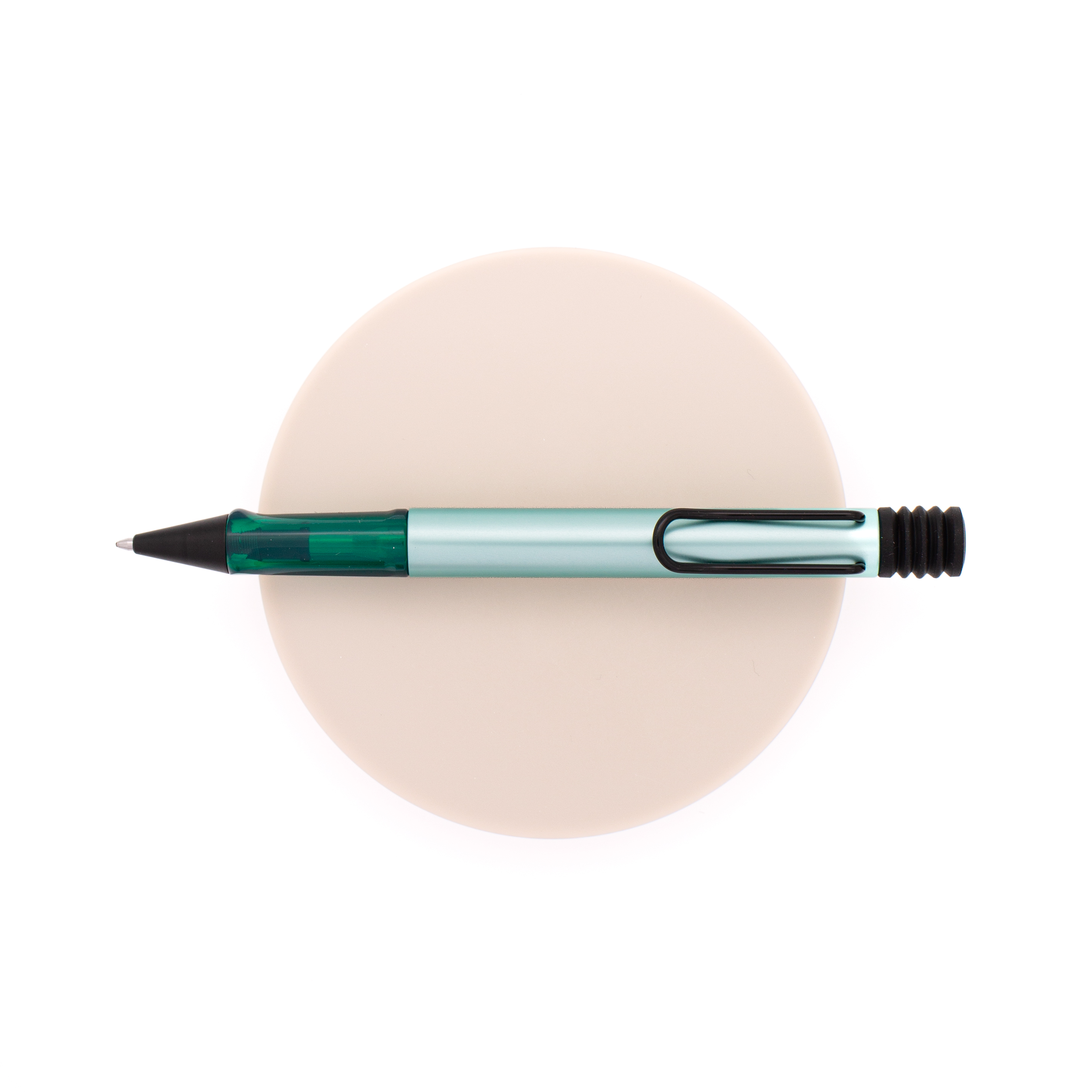 With a mint green aluminum body and transparent grip, the AL-Star Mint ballpoint pen is stylish and reliable. Features a click-action mechanism and Lamy M16 refill for smooth everyday writing.