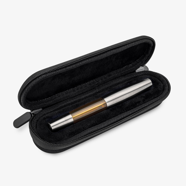 A fountain pen crafted from Ultem and polished titanium, combining technical precision and elegant design. With the Kraken Filling System and a size 8 steel nib, it offers a fluid, reliable writing experience.