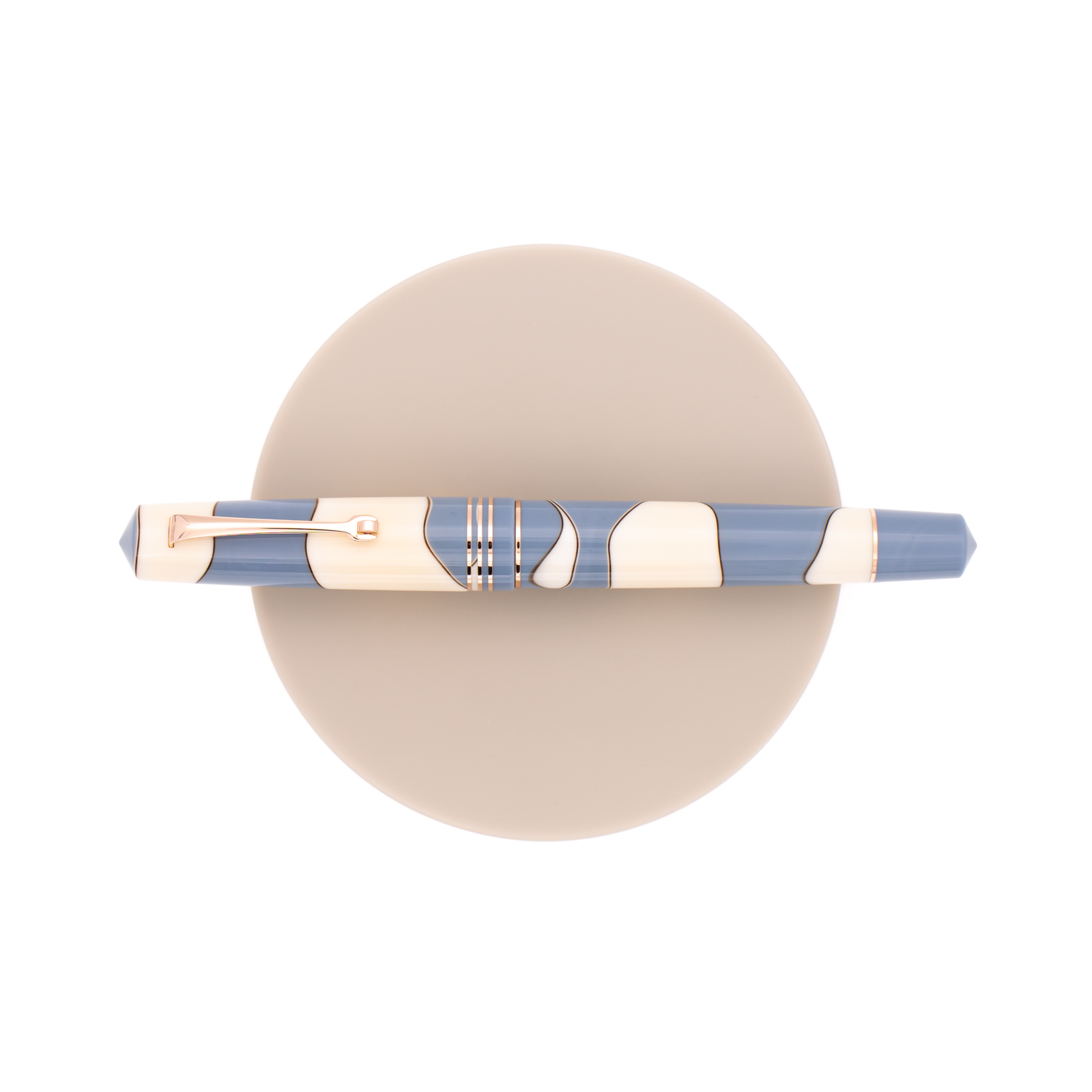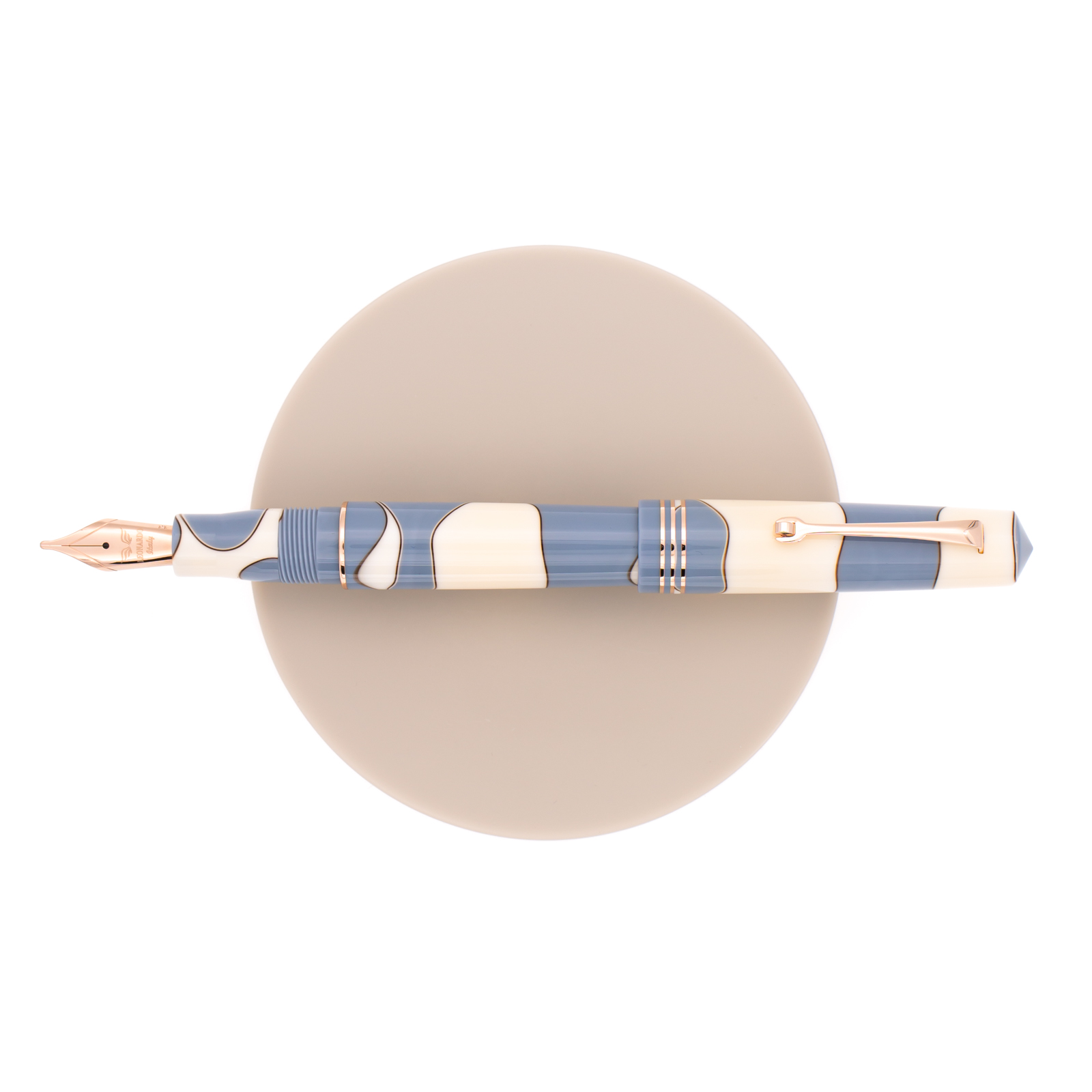 Leonardo Officina Italiana Momento Zero Nuvola & Rose Gold is equipped with the new steel nib from Leonardo Officina Italiana that is available in EF, F, M, B and 1.5 Stub. ABS feed and rose gold trim.