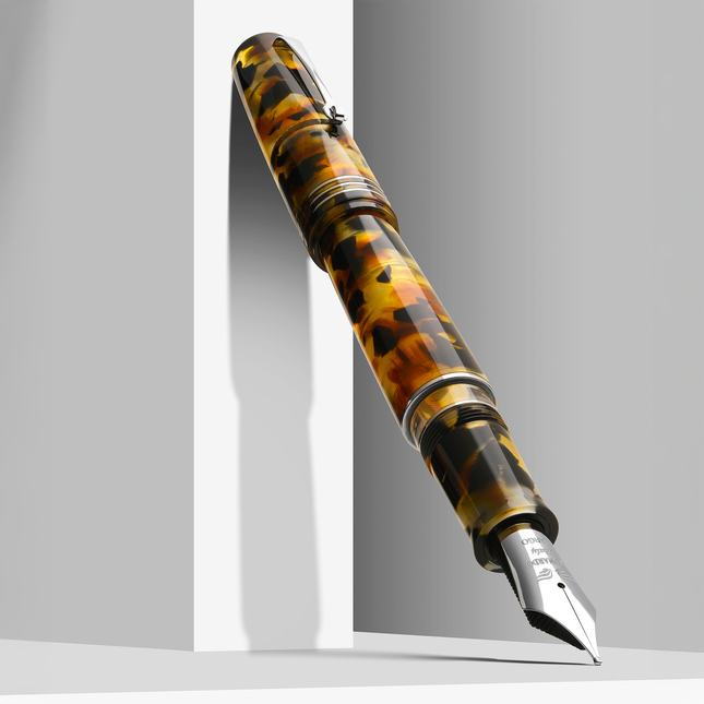 A first for Leonardo: #8 steel nib with ebonite feed. Undergrowth tones in translucent resin meet rhodium trim and piston filler. A pen that balances innovation and natural elegance.