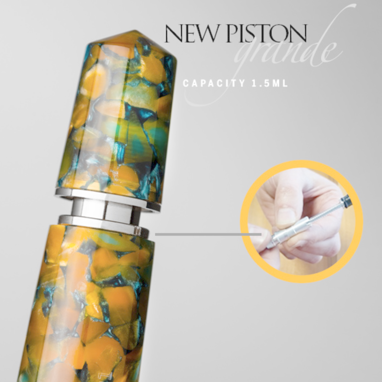 Leonardo Officina Italiana introduces 4 new fountain pens to the collection Momento Zero Grande. But the most important news is the piston filler designed and produced from the Italian factory. Momento Zero has now a 1,5 ml ink capacity.