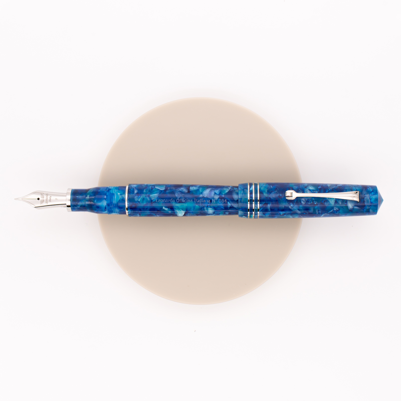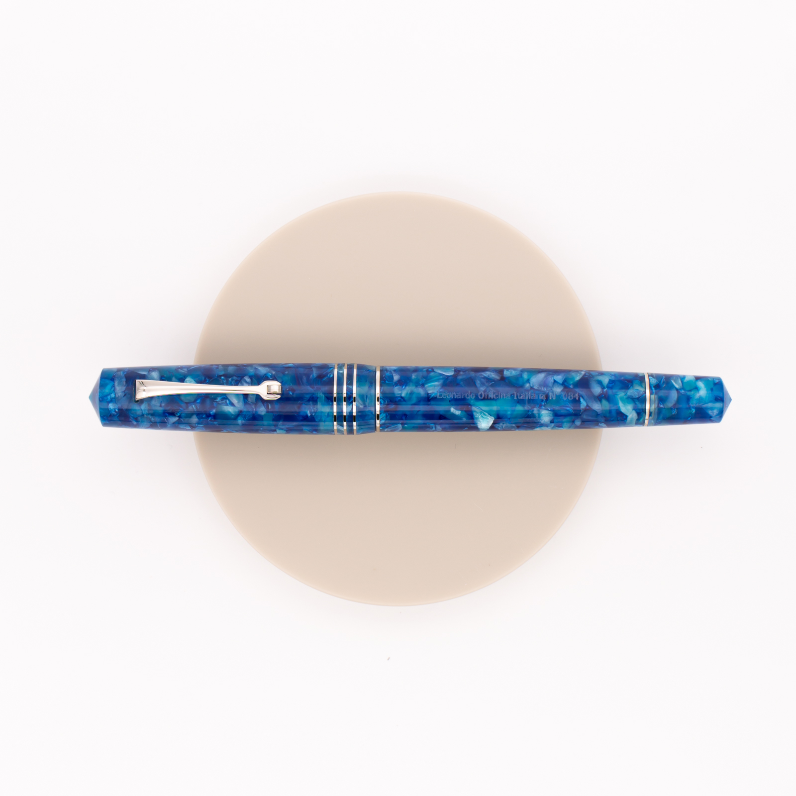 Blue Marina Capri is a blue resin hand turned in Italy. Every pen has the name Leonardo Officina Italiana and its serial number engraved on body. Steel nib and ebonite feeder. Comes with a bottle of ink.