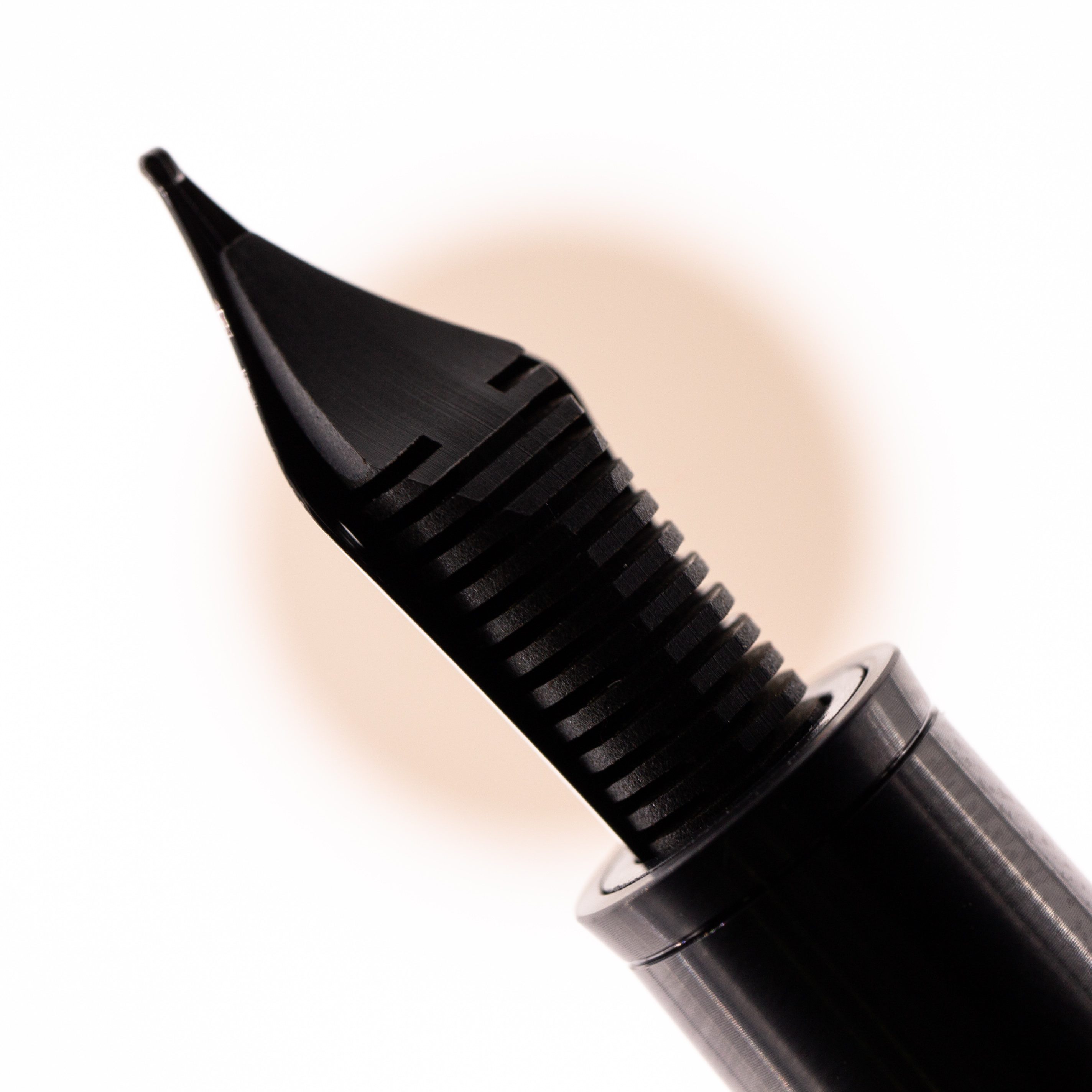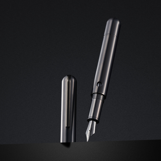 Following in the footsteps of the extremely popular 365 Anniversary Plongeur, Navalur presents Nautilus Ti Black, a fountain pen made out of titanium. It is completely plated black from nib (14 k gold with ebonite feed) to piston.