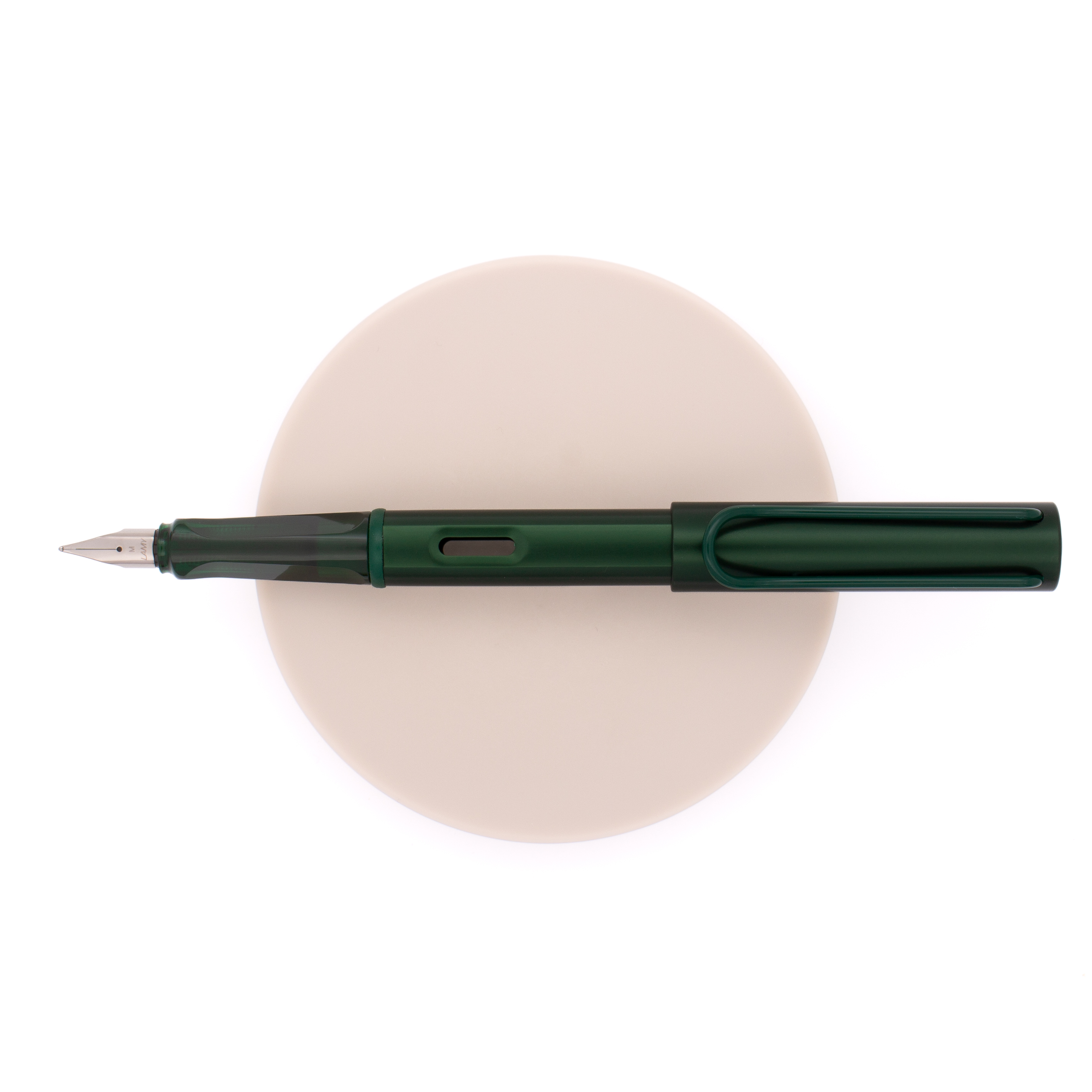 A deep Pine green aluminium fountain pen with a satin finish. Featuring a replaceable steel nib, ergonomic transparent grip and the iconic lightweight design of the Lamy AL-Star range.
