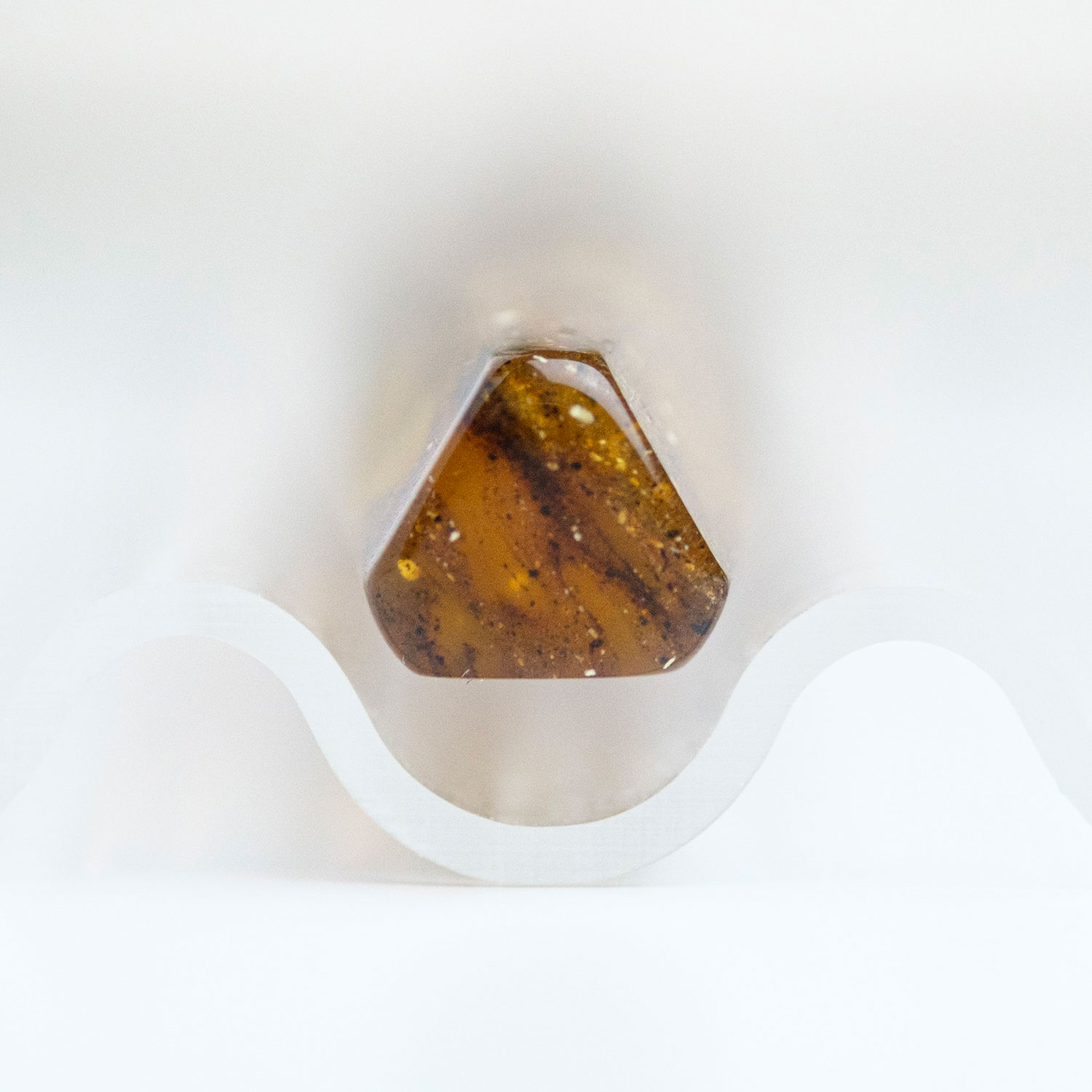 The resin stands out for its three-dimensional effect, where semi-transparent areas meet denser layers, creating a sense of depth that constantly evolves with light. Each pen is unique, offering ever-changing nuances, like a landscape shifting through time.