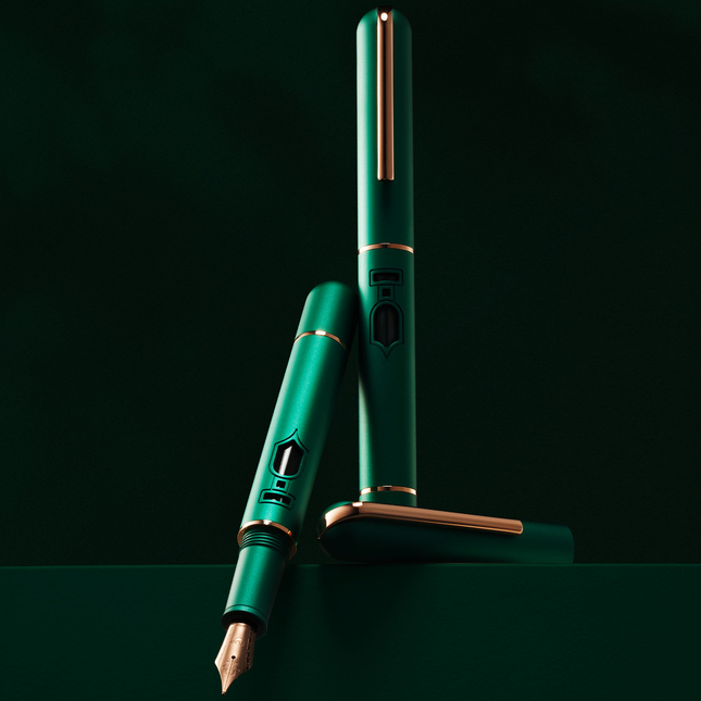 Nahvalur Nautilus Fountain Pen Day is the official Fountain Pen Day 2025 release, a special collaboration between Nahvalur and Fountain Pen Day. Crafted from emerald anodized aluminum with rose-gold trims, it blends contemporary design with a celebratory spirit.