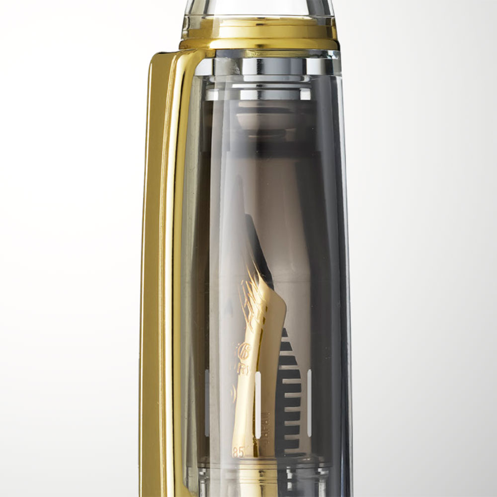 The fully transparent body allows a clear view of the pen’s refined internal construction and ink level. The inner surface of the barrel has been redesigned with a flat finish to reduce reflections, enhancing clarity and emphasizing the clean, technical elegance of the Demonstrator design.