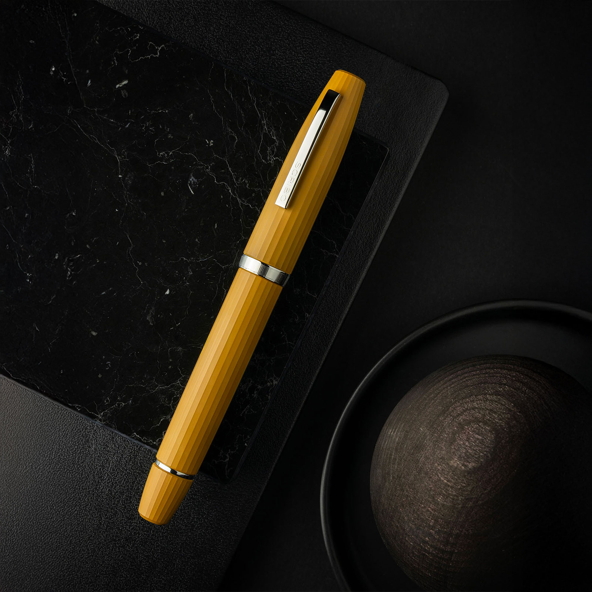 The Scribo Flow Forma features bright ochre ebonite and the distinctive 24-facet body of the Flow collection. Equipped with a 18k gold nib or 14k flexible nib, it is produced in a limited edition of 50 pieces.