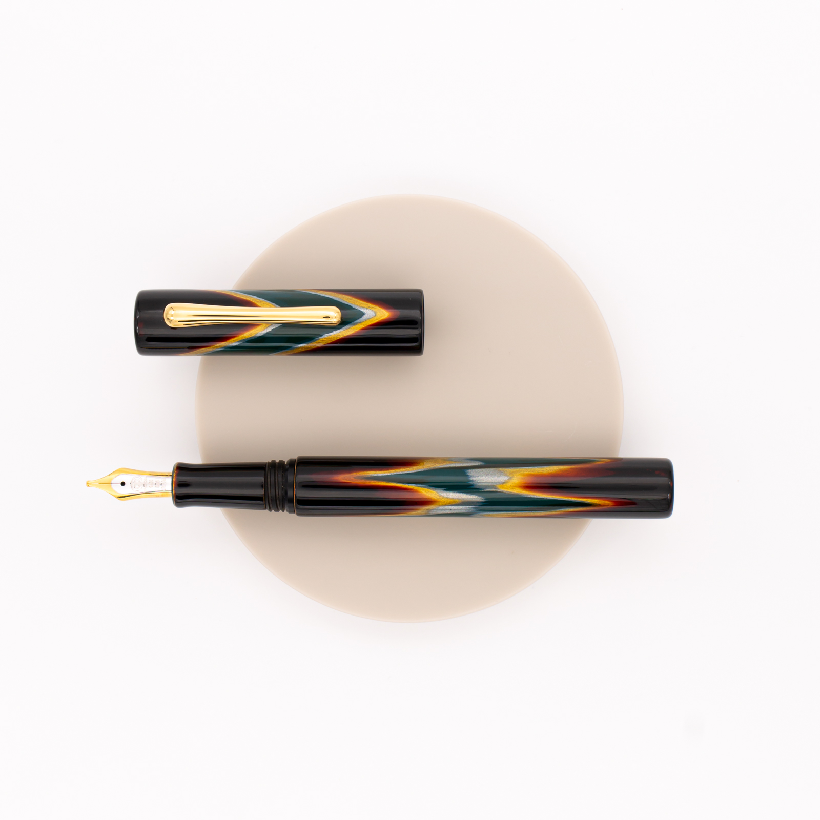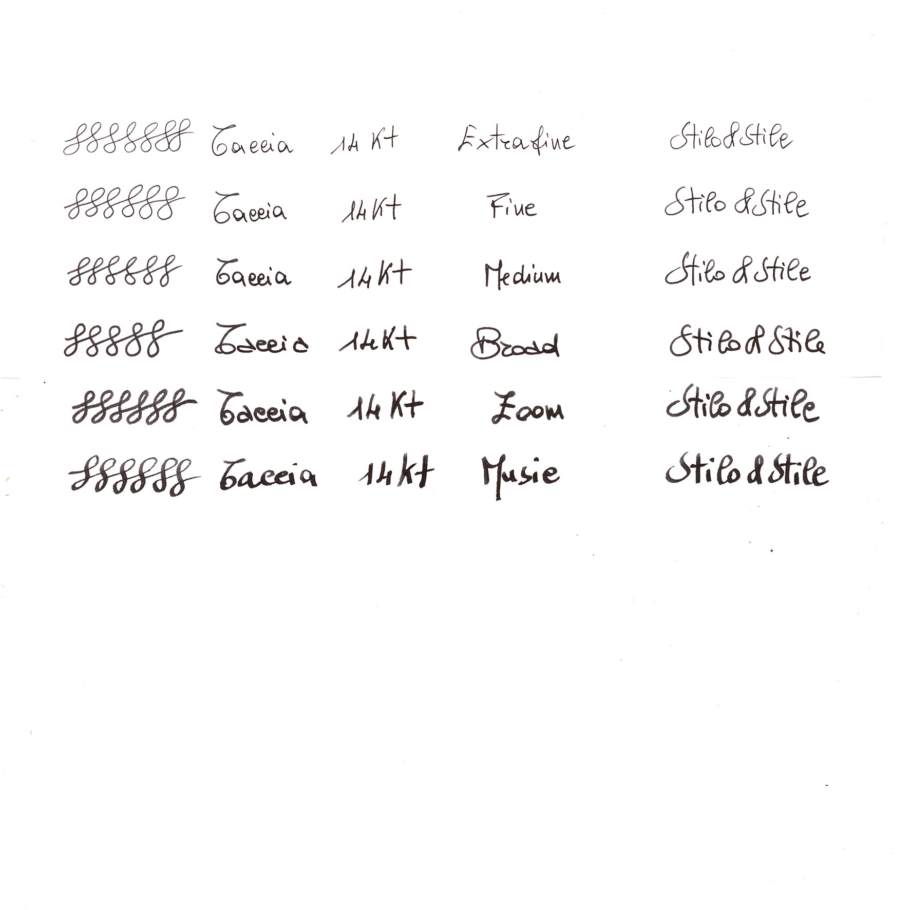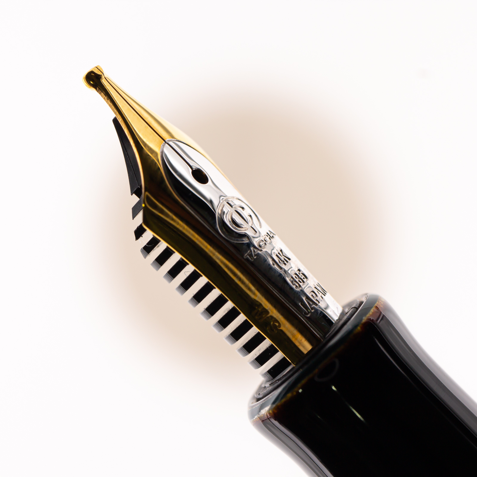 The fountain pen is fitted by a 14 KT gold nib made by Sailor with the Taccia logo. The pen in fact accepts only original Sailor converter and cartridges.