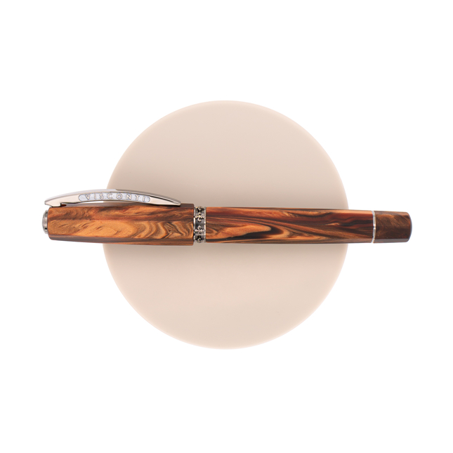 The fountain pen is equipped with a 18k gold nib with ruthenium trim. Cap uses Visconti "Hook Safe Lock", an innovative system that is easy to use and safe while carrying. The fountain pen features the Visconti's patent Double Reservoir Power Filler that allows a great ink capacity and safe usage in extreme conditions (for example on air flights).