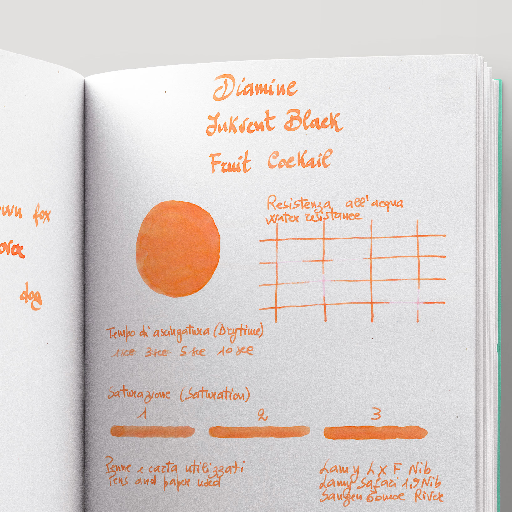 Fruit Cocktail is a fountain pen ink in a vibrant, energetic orange shade. A bold and cheerful color, perfect for adding brightness and personality to your writing.