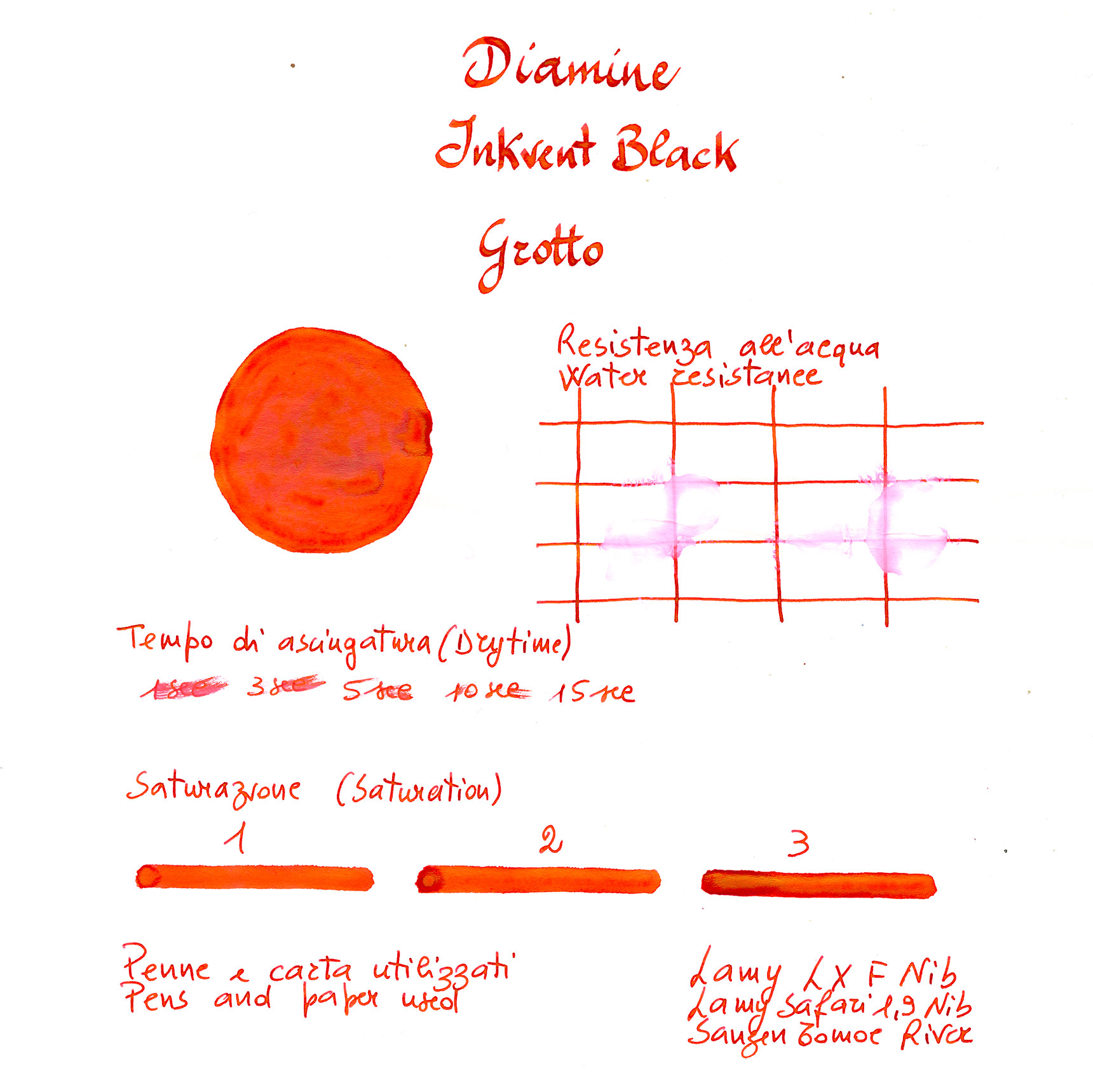 Diamine Grotto is one of the Extreme Sheen inks from the InkVent Black Edition 2024 collection, featuring 25 exclusive colors originally introduced in Diamine’s Advent Calendar, now available in 50 ml bottles.