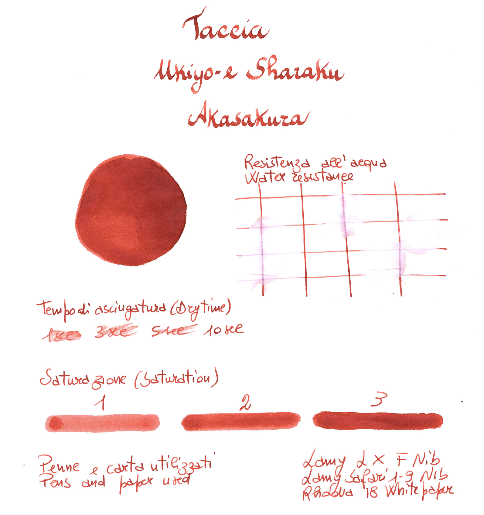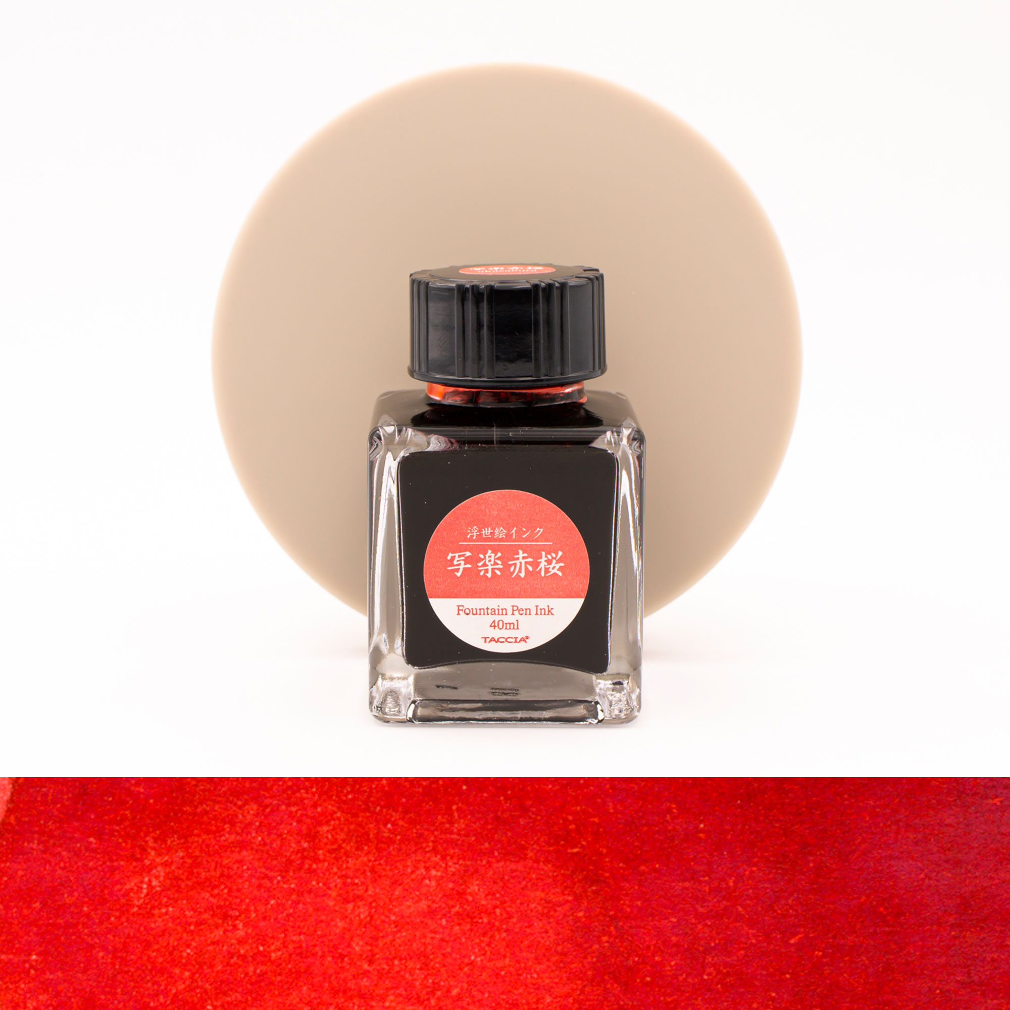 Taccia Ukiyo-e is a line of fountain pen ink with different colors inspired by traditional Japanese paintings. Akasakura is a red from Sharaku opera "The actor Ichikawa Omezo as Yakko Ippei" that is reproduced on packaging.