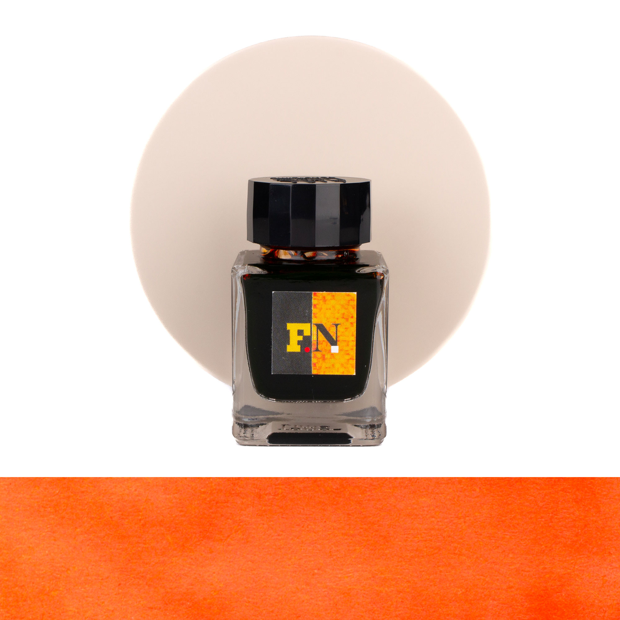Tono & Lims F.N. is a 30 ml fountain pen ink from the Friendship Collection. A bright orange shade (RGB 246, 155, 88) with a warm and vibrant character.