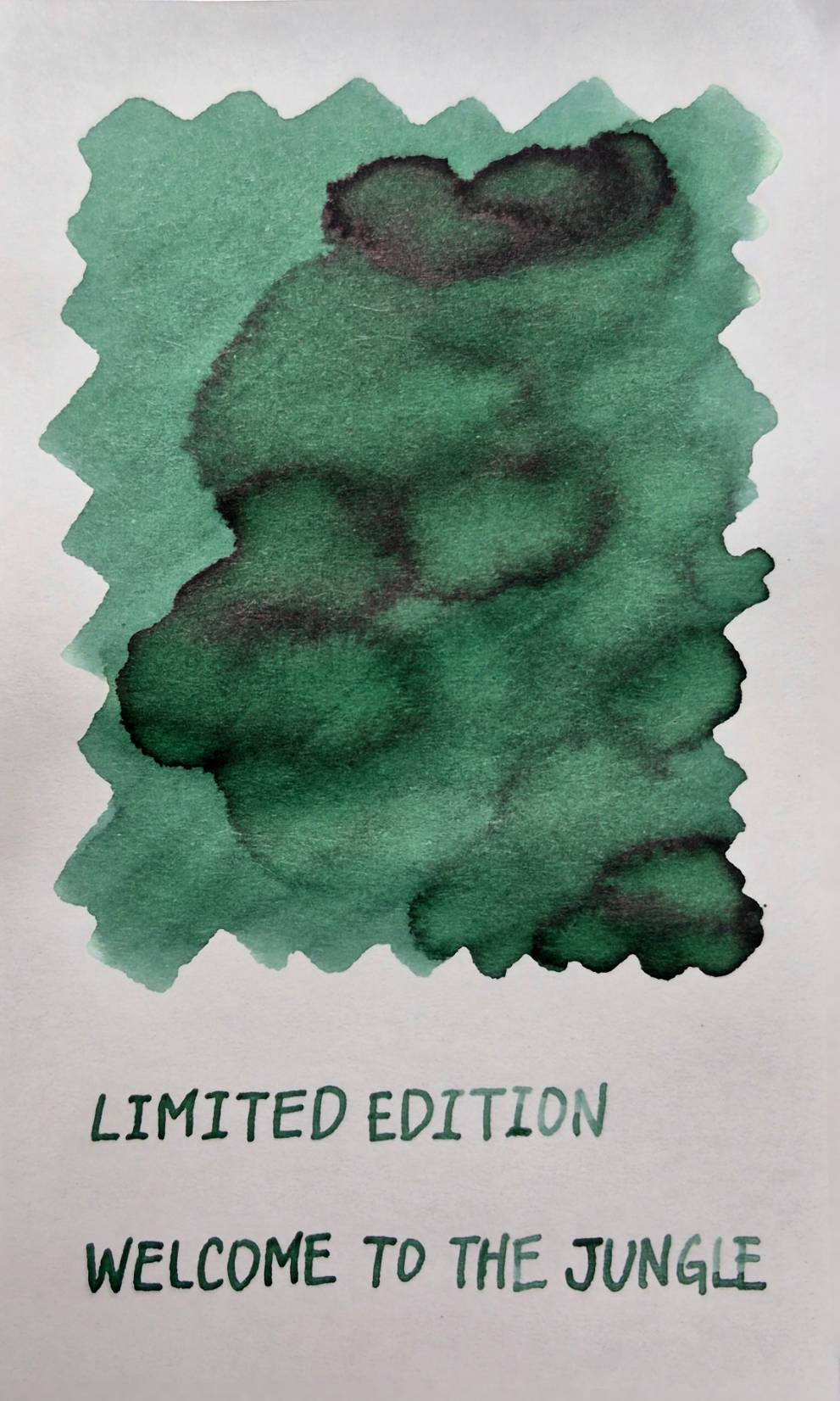 Welcome to the Jungle is a green ink featuring elegant shading, allowing for visible variation in tone depending on ink distribution, enhancing clarity and readability.