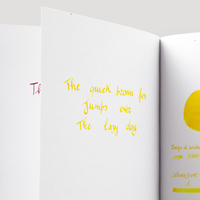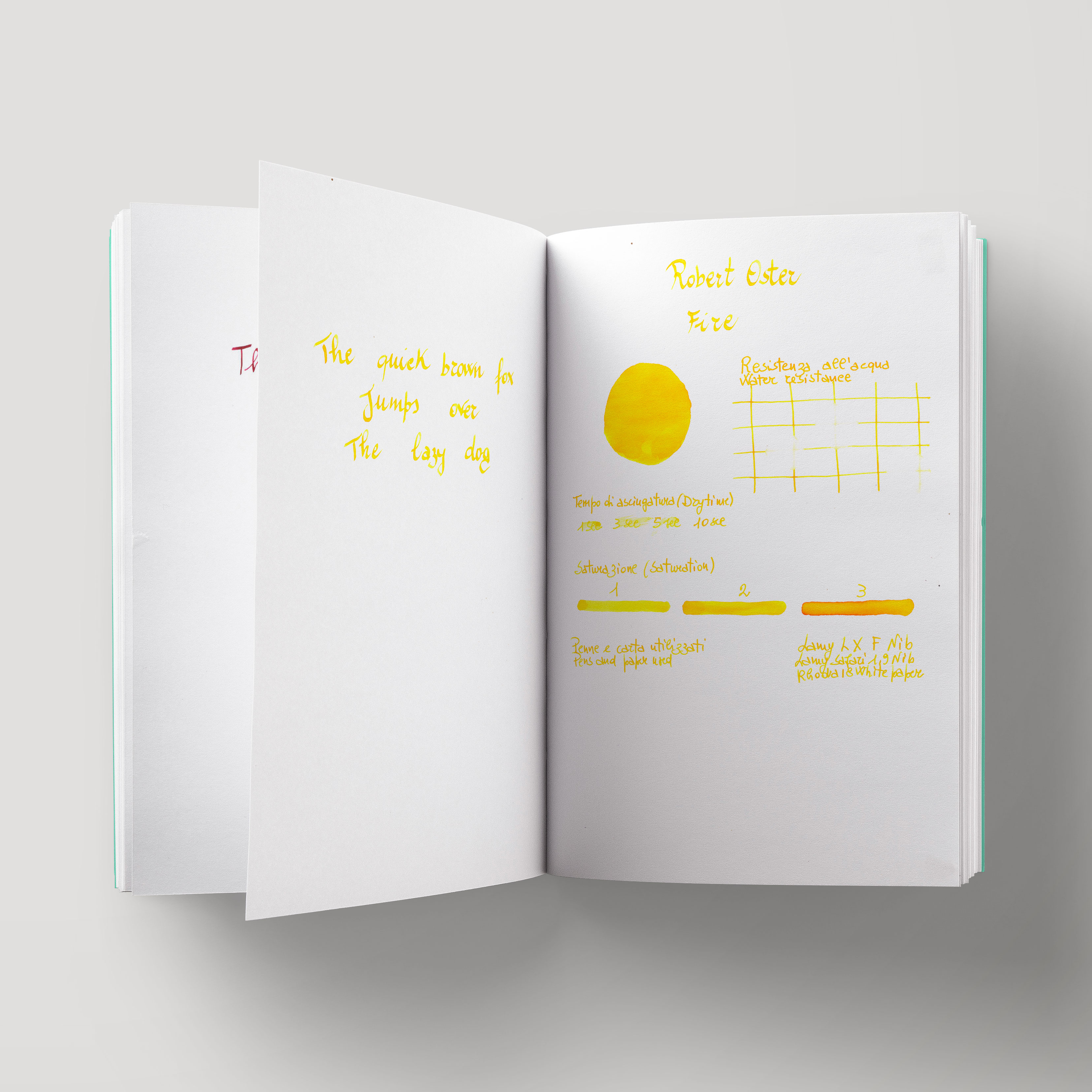 Robert Oster Fire is the color of a fiery pastel golden orange fire that trails away in homage to the sun and meets the page in sympathy. It is a standard fountain pen ink and comes in a bottle of 50 ml.