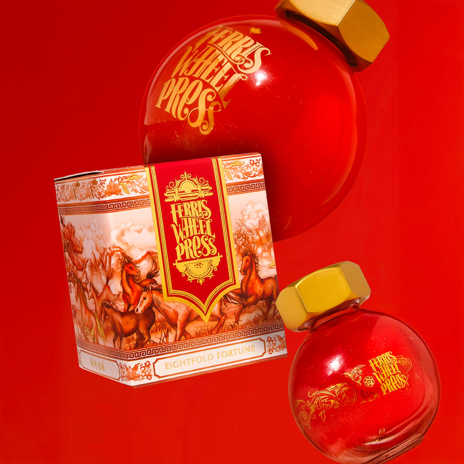 Ferris Wheel Press Eightfold Fortune 20 ml is a fountain pen ink created to celebrate the Lunar New Year, a time of renewal, energy, and new beginnings. Part of the FerriTales™ 2026 Lunar New Year Special Edition, this ink tells a story of movement, ambition, and prosperity.