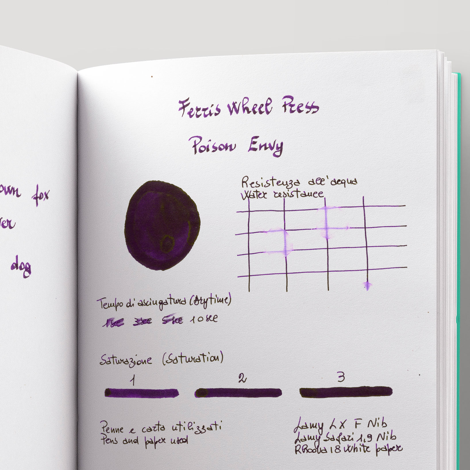 Ferris Wheel Press FerriTales is a collection of fountain pen inks where you are able to explore famous tales. Poison Envy is inspired to Snow White and features a deep purple with duochrome green and pink shimmer.