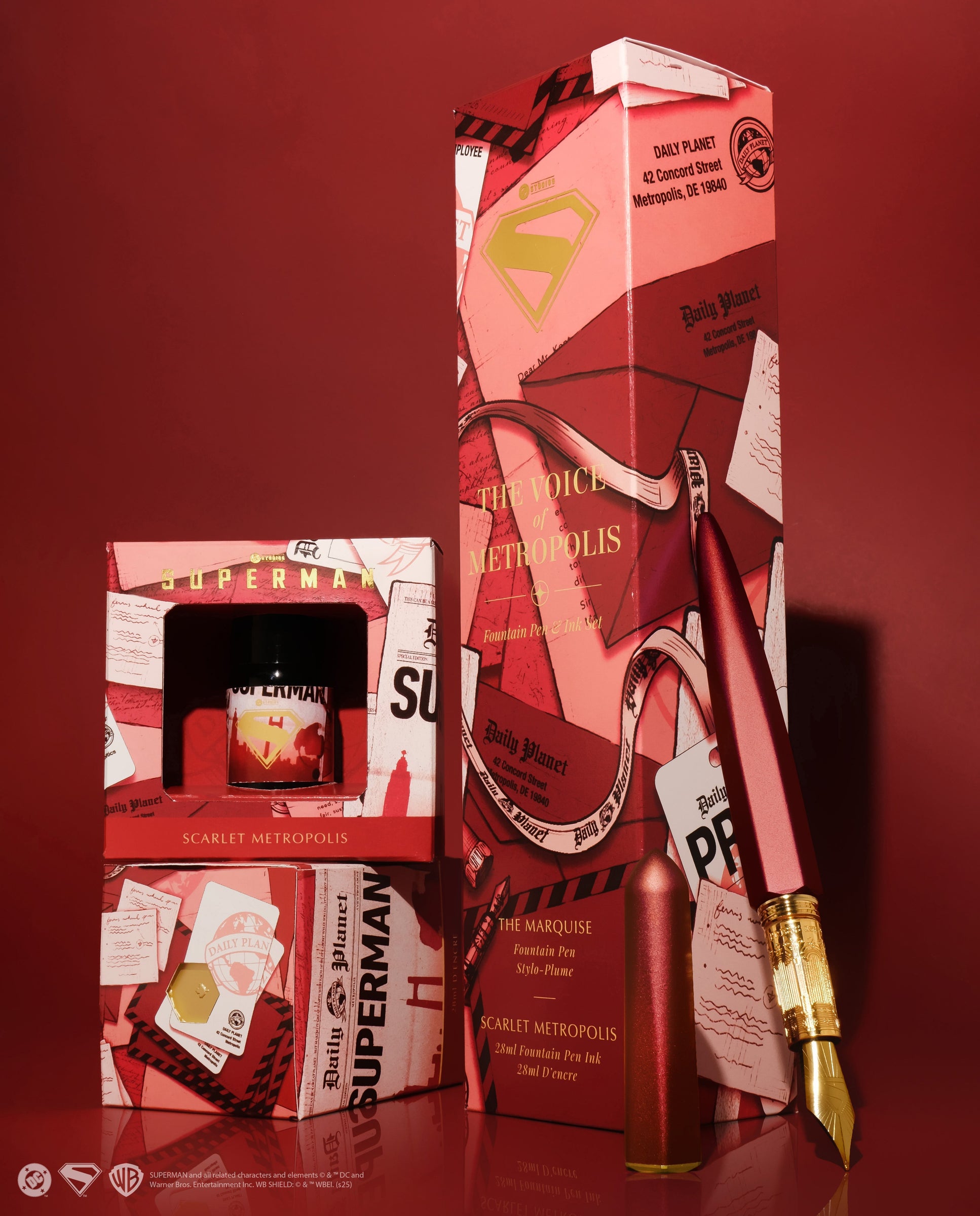 Ferris Wheel Press x Superman Scarlet Metropolis 28 ml is a fountain pen ink that captures the pulse of Metropolis, a city in constant motion where every mark carries presence and intent.