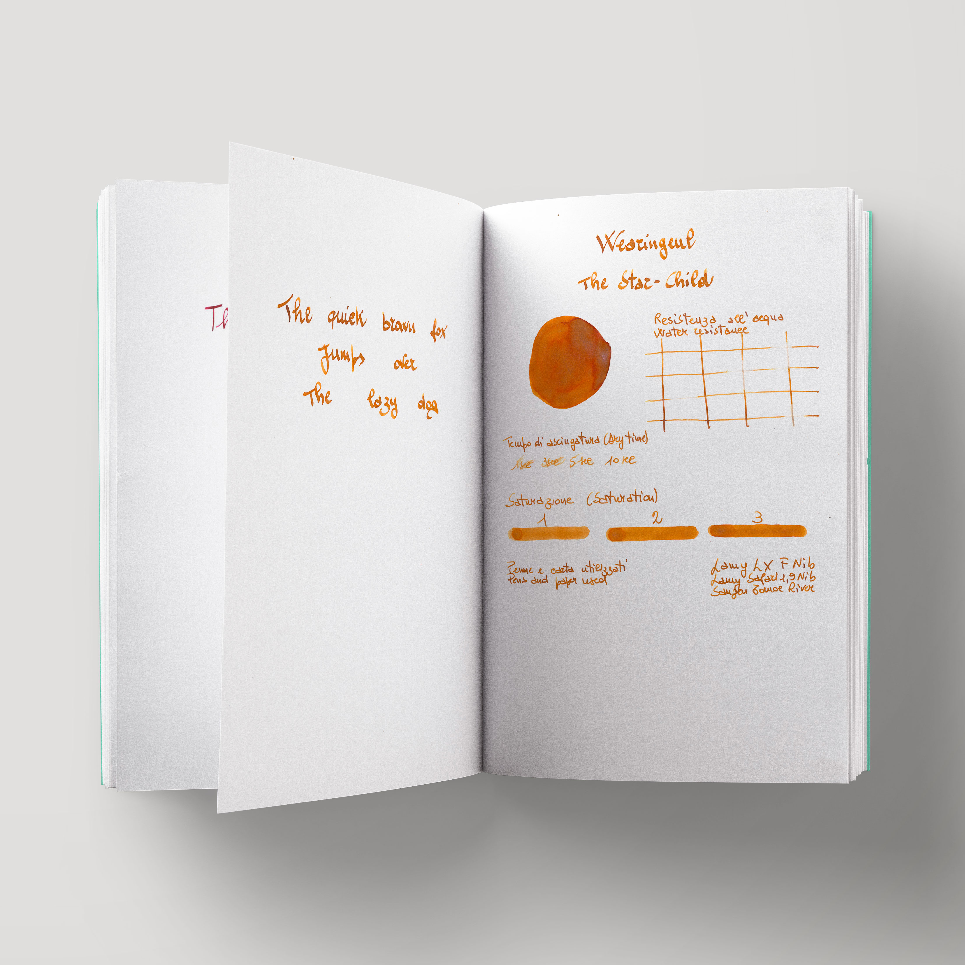 Wearingeul The Star Child ink has a calming orange-yellow base with subtle violet shimmer. This ink is part of Oscar Wild Ink series and inspired by the homonymous opera.