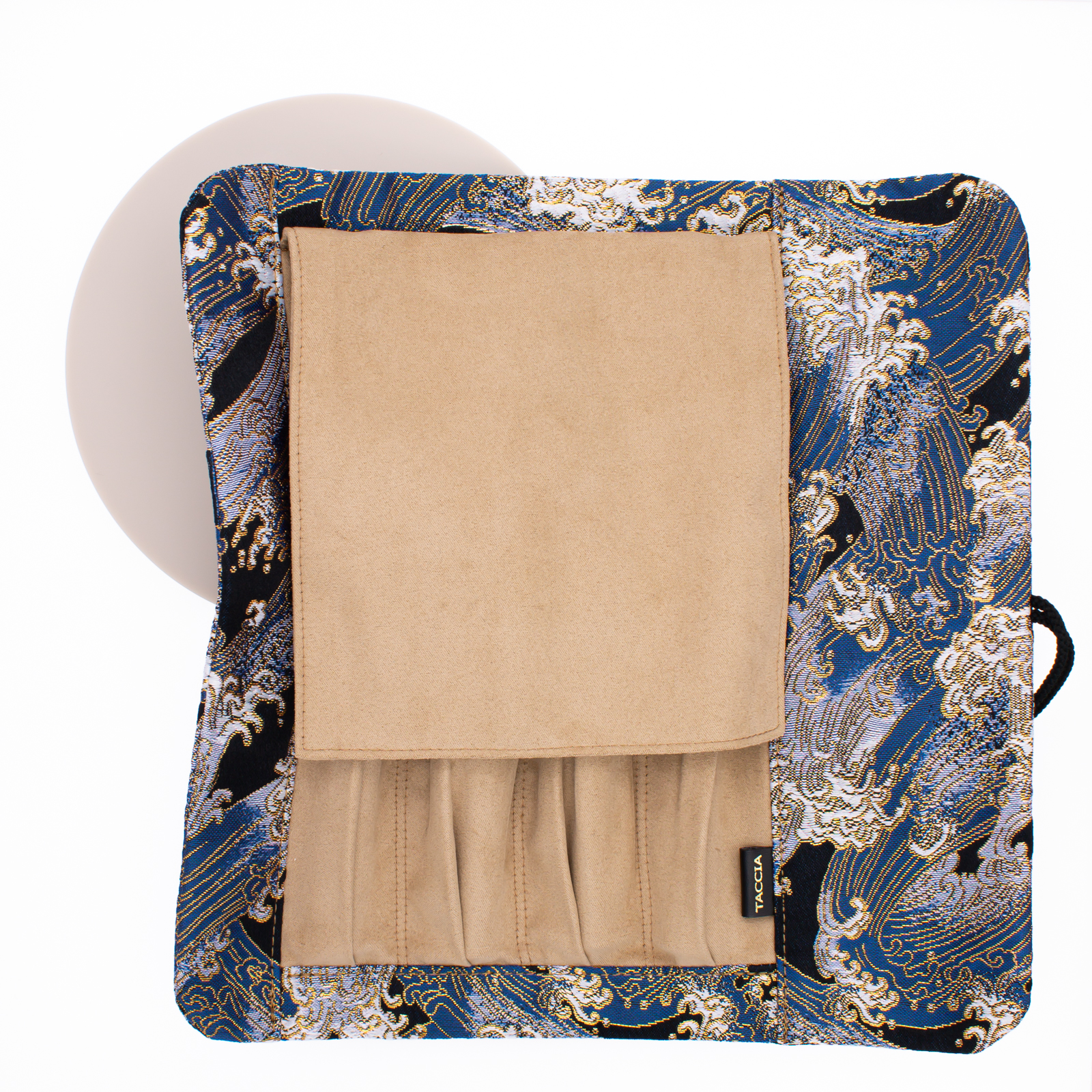 Taccia Kimono Pen Roll Nishijin Wave is made with Nishijin Kinran, a traditional Japanese weaving technique that was developed and has evolved since the Fifth Century. It accepts until 4 pens in all dimensions.
