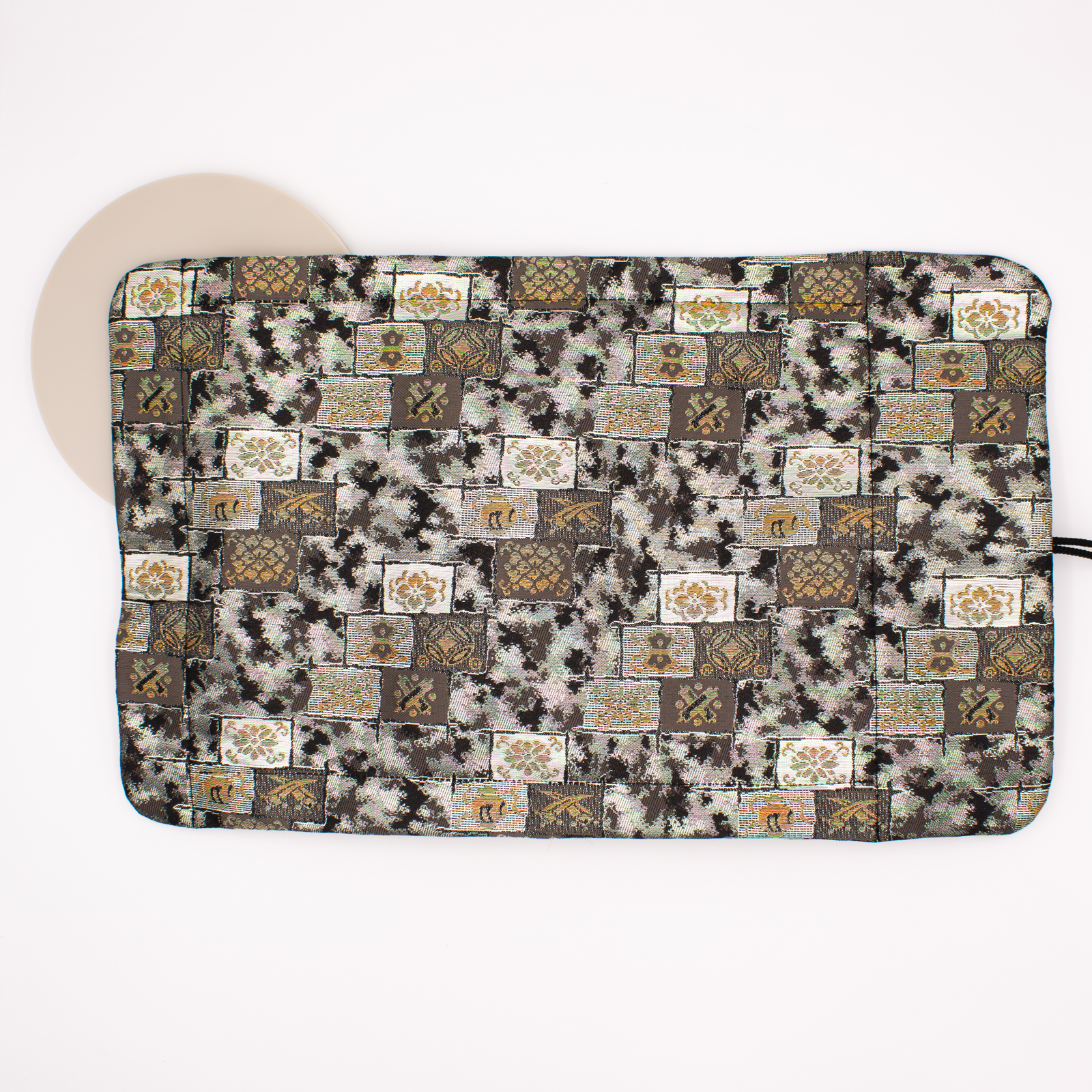 Taccia Kimono Pen Roll Nishijin Mosaic is made with Nishijin Kinran, a traditional Japanese weaving technique that was developed and has evolved since the Fifth Century. Nishijin Kinran has been a part of celebration, fashion, and expression throughout Imperial Japan, dressing noblemen, samurai, and the societal elite.