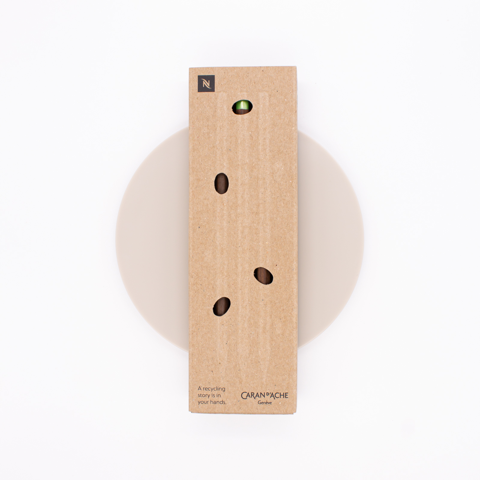 Caran d'Ache and Nespresso are again together for the 4th edition with two different writing instruments, both made with recycled capsules: fixpencil 2 mm and a set of three pencils.