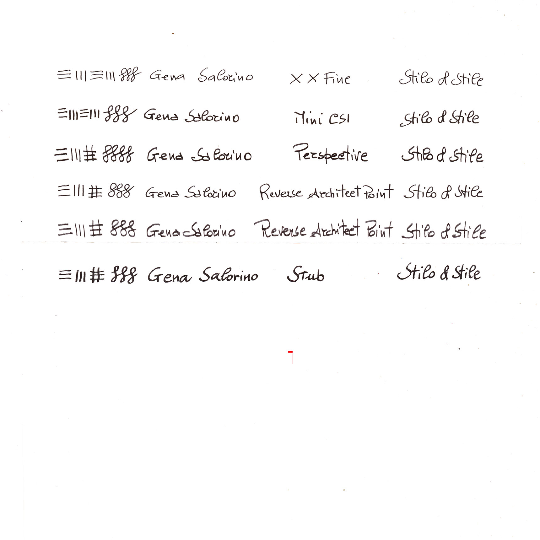 Gena Salorino (Custom Nib Studio) is a full-time nibmeister living in Los Angeles with their partner Kyle and two cats. They trained with nibmeister John Mottishaw for the better part of four years, where they learned tuning, nib customization, and vintage pen repair. They have traveled to Japan and visited with Pilot, Namiki, Platinum, Nakaya, and Sailor. They was lucky enough to participate in Maki-e, gold leaf, and nib tuning workshops while they was there. Click here and see the writing video of Gena Salorino nibs.