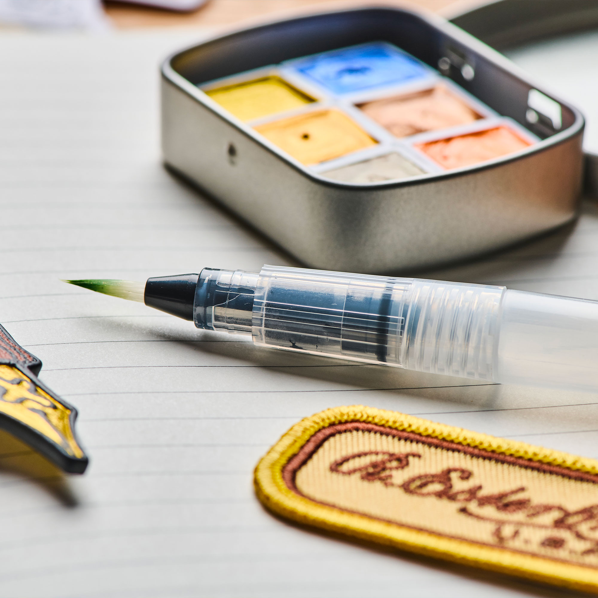 The Esterbrook Travel Journal Workshop Set is a creative travel kit with case, journal, accessories, stamps, a watercolor set, and a water brush pen, inviting you to record and decorate your journeys with true analog joy.
