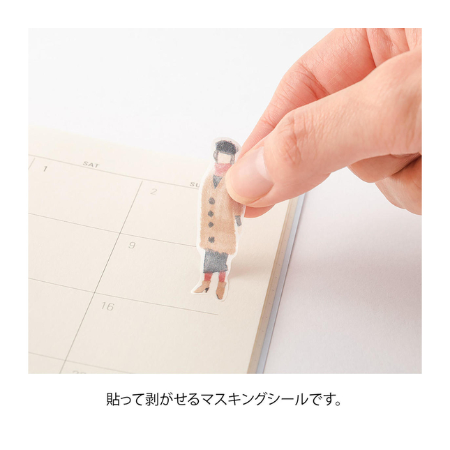 Midori Sticker Two Sheets Fashion features casual to slightly formal women expressed with watercolor touch. A sticker made of masking tape for decorating notebooks and diaries, planners.