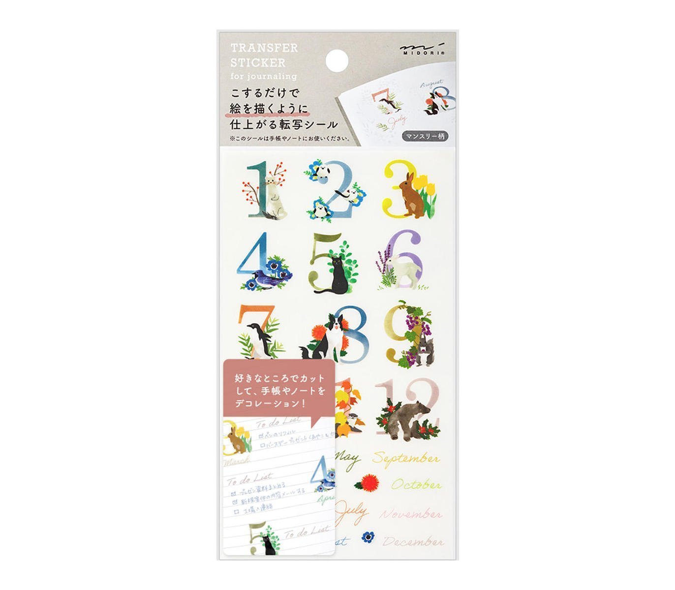 Midori Transfer Sticker Monthly is a set of transfer stickers to decorate your notebook or planner with patterns that look like they were printed! Since no bumps are created at all, the image is as perfect as if it had been printed.
