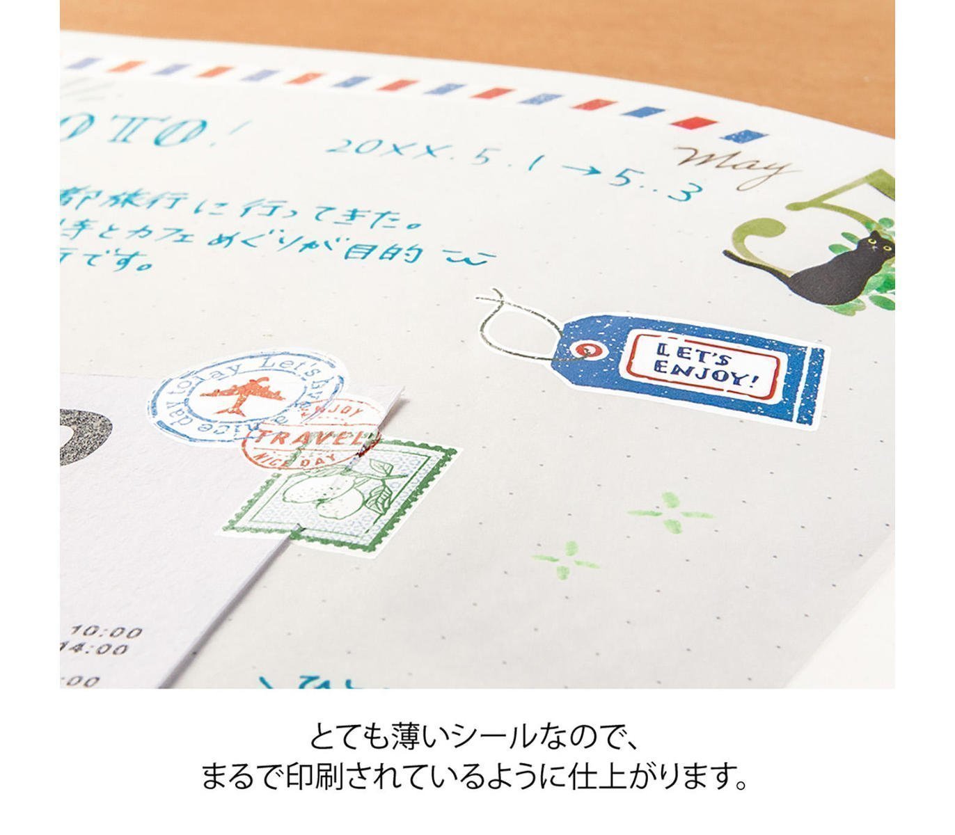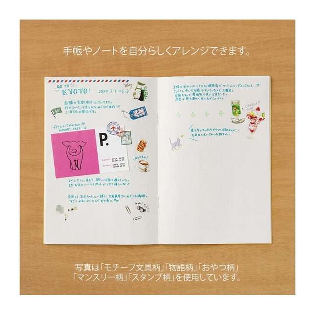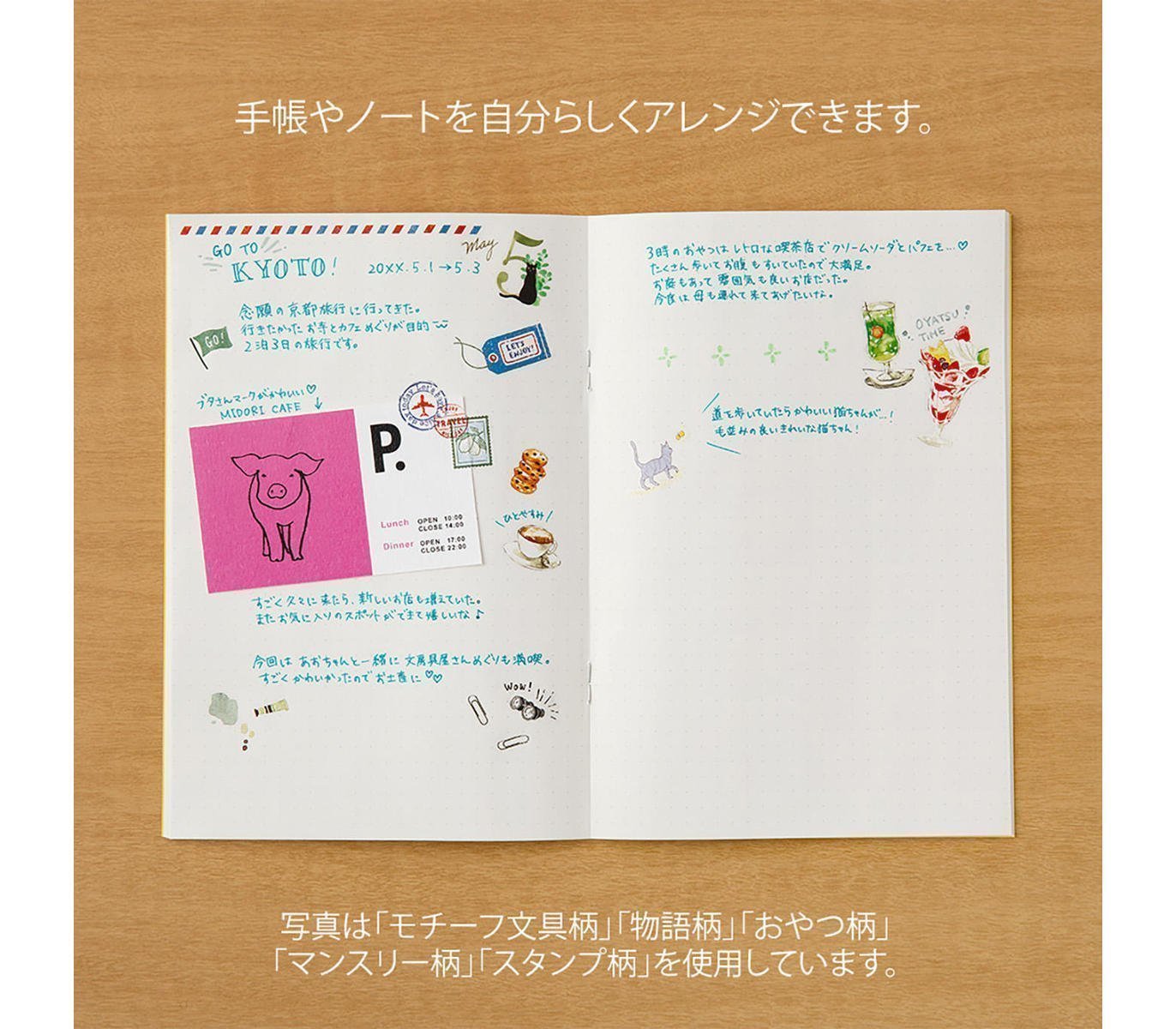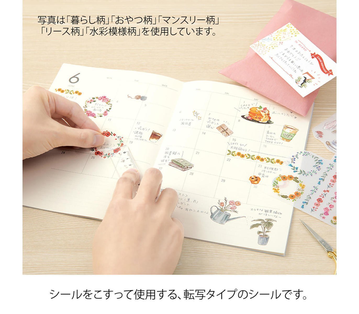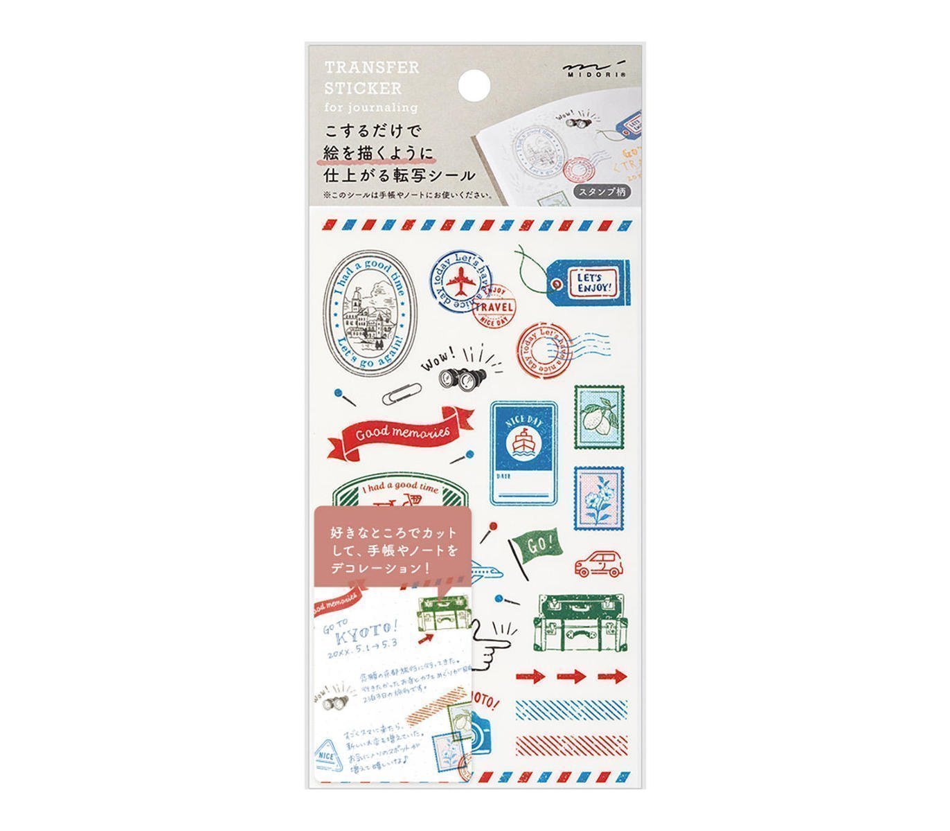Midori Transfer Sticker Stamps is a set of transfer stickers to decorate your notebook or planner with patterns that look like they were printed! Since no bumps are created at all, the image is as perfect as if it had been printed.