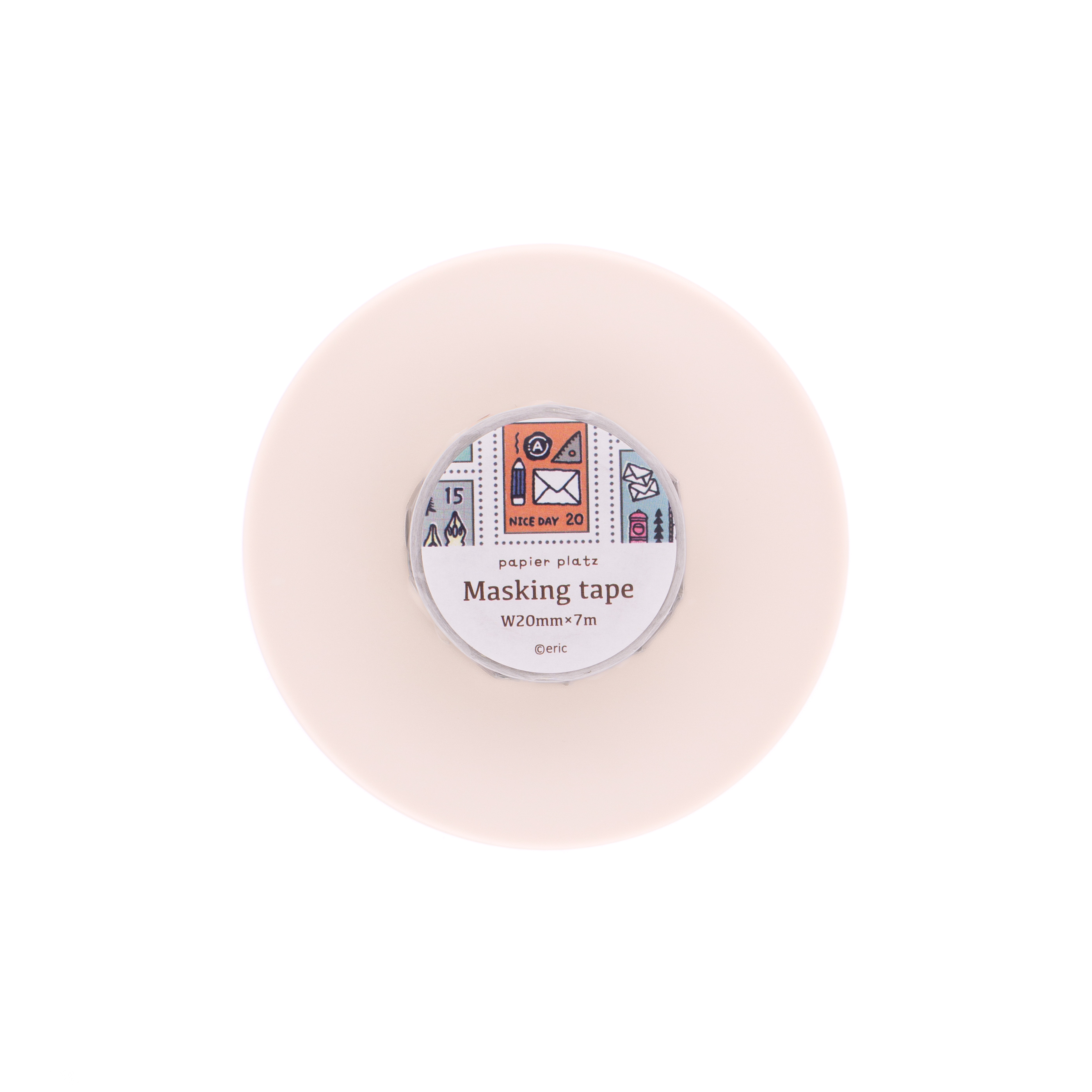 Washi tape from the Papier Platz x Eric Small Things collaboration featuring illustrated postage stamp designs. Perfect for decorating planners, journals, and letters. Size 20 mm x 7 m.