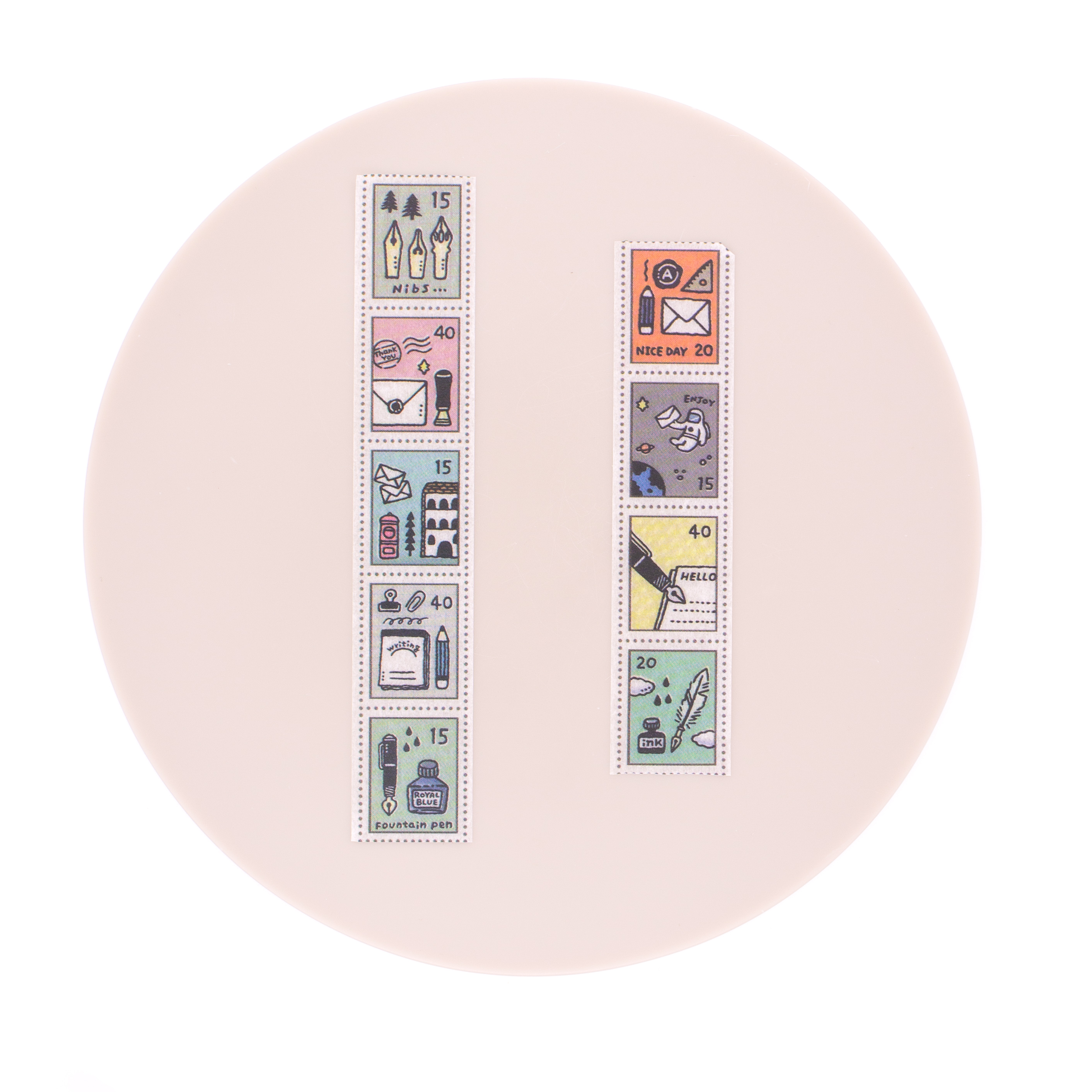 The Stamp design features a series of small illustrated motifs drawn in the artist’s soft and recognizable style, perfect for decorating planners, journals, letters, and creative projects.