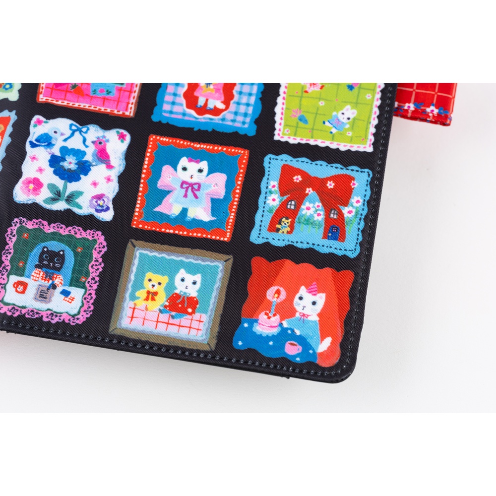 Realizzata in poliestere, la cover si distingue per i suoi dettagli ricchi di sorprese. All’interno, la fodera presenta un motivo a quadretti rossi disegnato dalla stessa Kitagishi, con una tasca decorata dai gatti bianco e nero e una pellicola che ritrae ancora il piccolo gatto protagonista. Anche la tasca posteriore cela un’illustrazione aggiuntiva, tutta da scoprire.