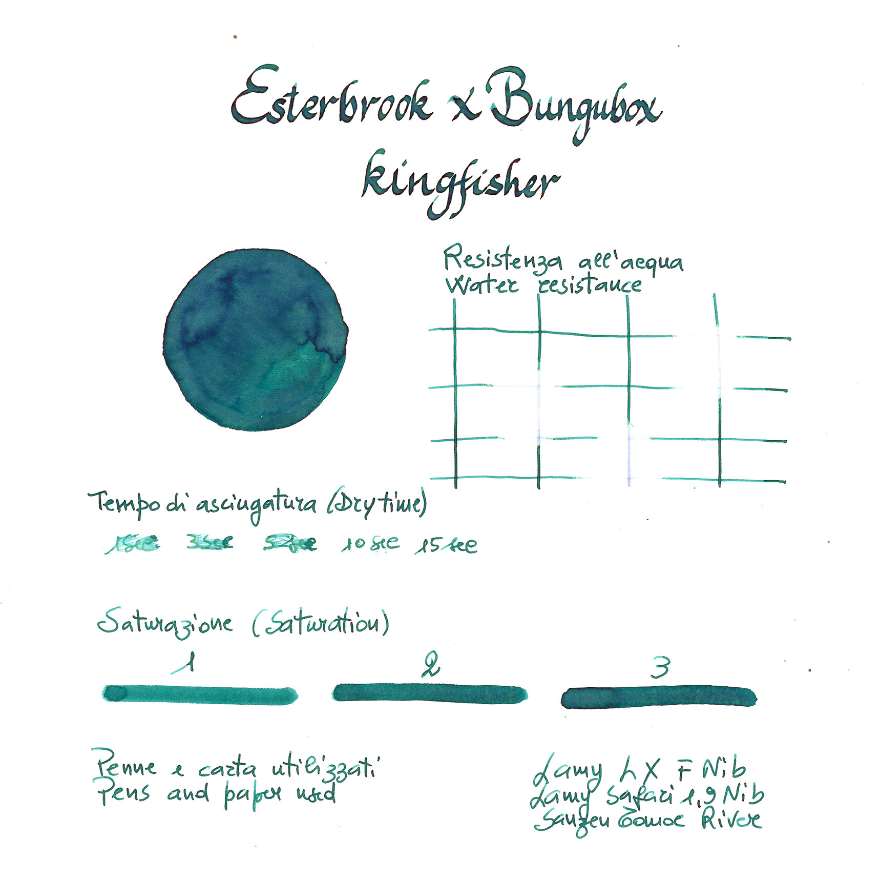 L’Inchiostro Esterbrook x Bungubox Kingfisher da 30 ml cattura le intense sfumature teal del martin pescatore, trasformando la pagina in un riflesso di eleganza naturale. Fluido, brillante e versatile, dona personalità alla scrittura senza risultare eccessivo.