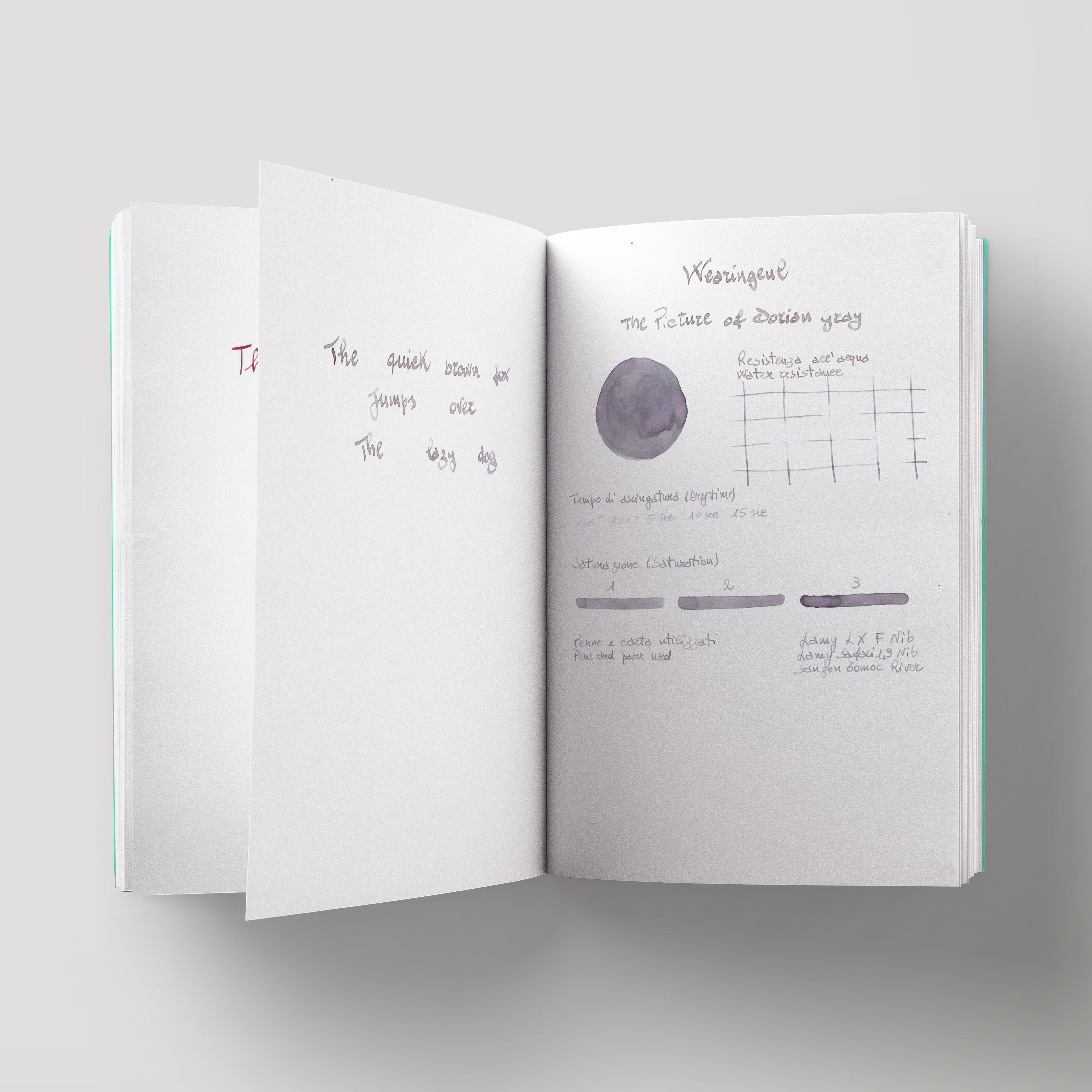 Il viola simboleggia la giovinezza, l'integrità e la bellezza perfetta. Il grigio rappresenta un ritratto che porta il peso dell'indulgenza, dell'invecchiamento e della corruzione. Mentre questi colori si rifiutano e si separano l'uno dall'altro, emerge l'inchiostro Wearingeul The Picture of Dorian Gray.
