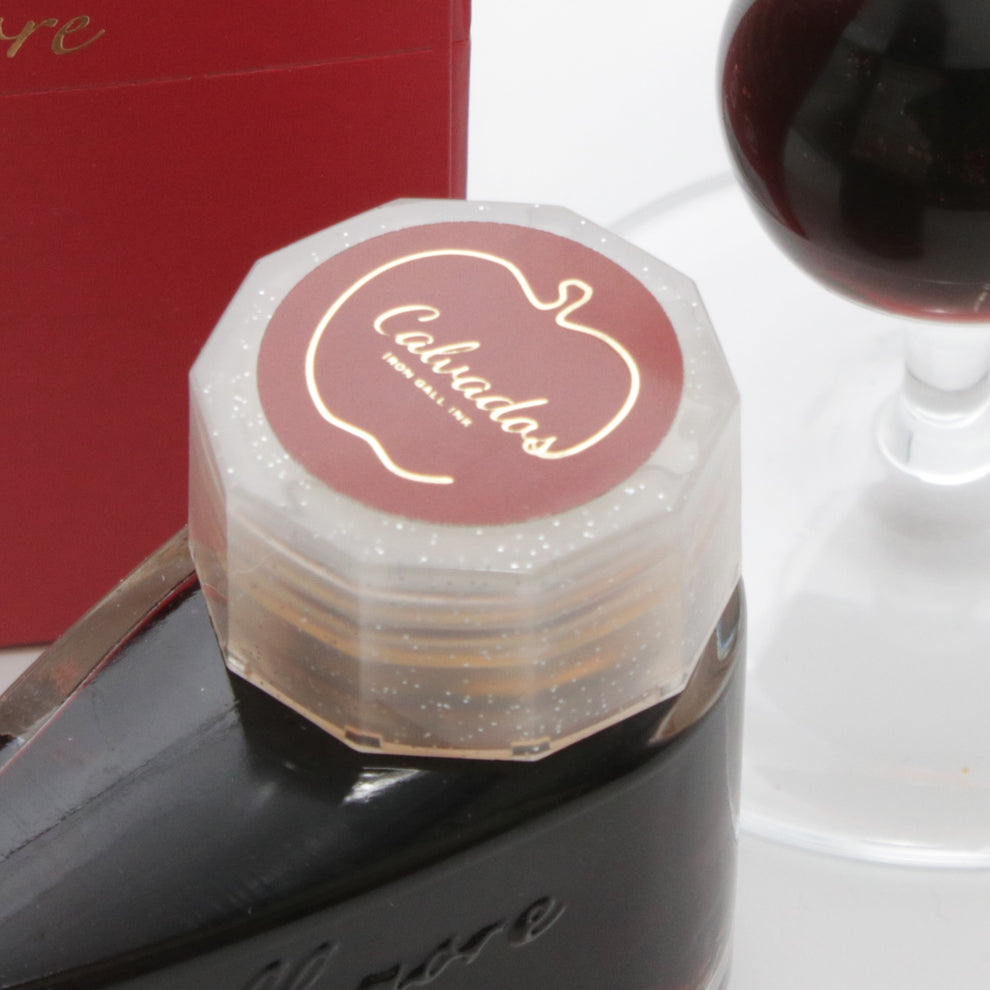 Bungubox Ink Tells More Calvados è un inchiostro per penne stilografiche ferrogallico ispirato al celebre brandy francese Calvados, uno dei grandi distillati ottenuti esclusivamente da mele, noto per il suo carattere intenso e avvolgente.