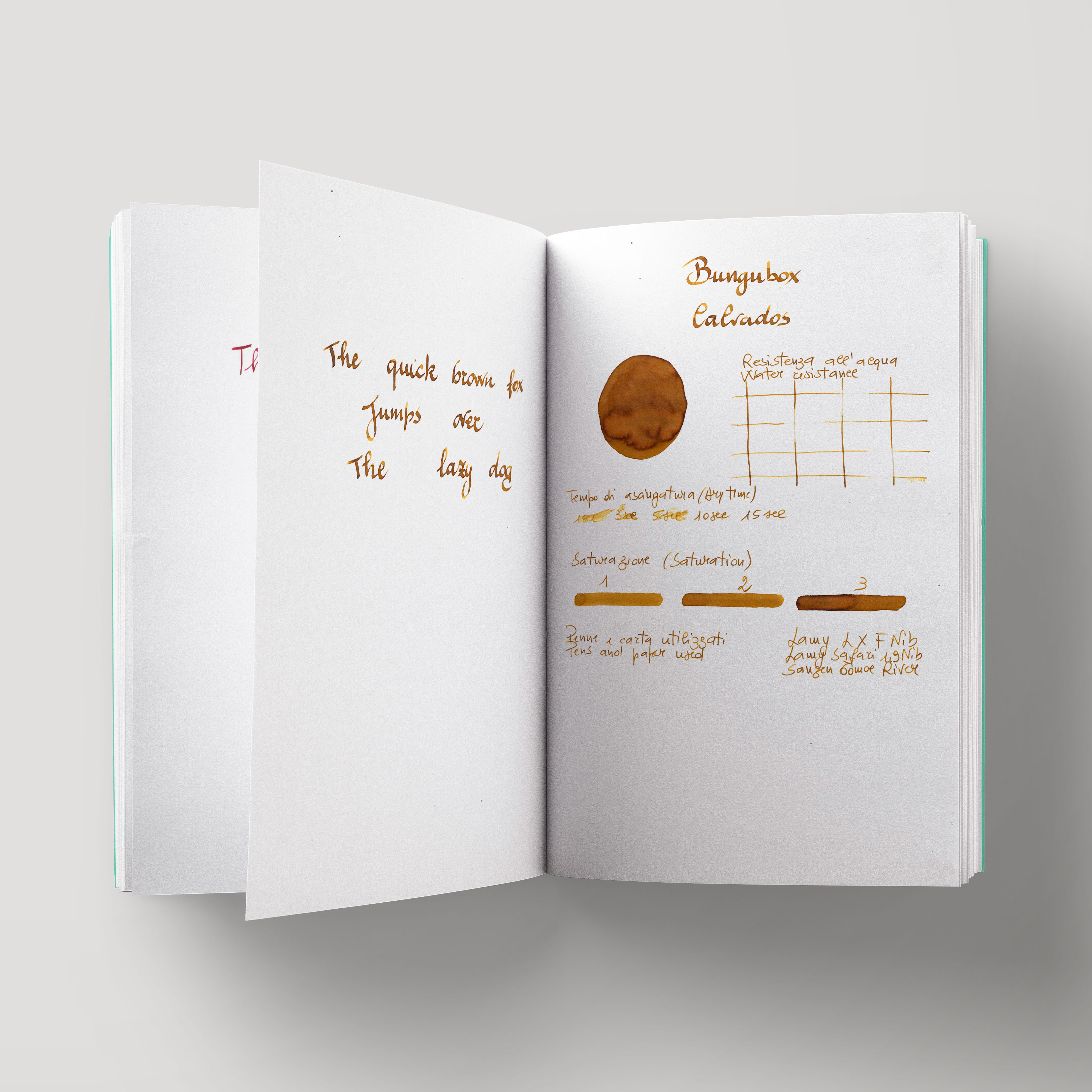 Grazie alla sua composizione, Bungubox Ink Tells More Calvados garantisce ottima resistenza all’acqua e alla luce, risultando adatto a scritture destinate a durare nel tempo. È un inchiostro pensato per momenti lenti e riflessivi, da utilizzare con la stessa calma con cui si assapora un distillato dopo cena.