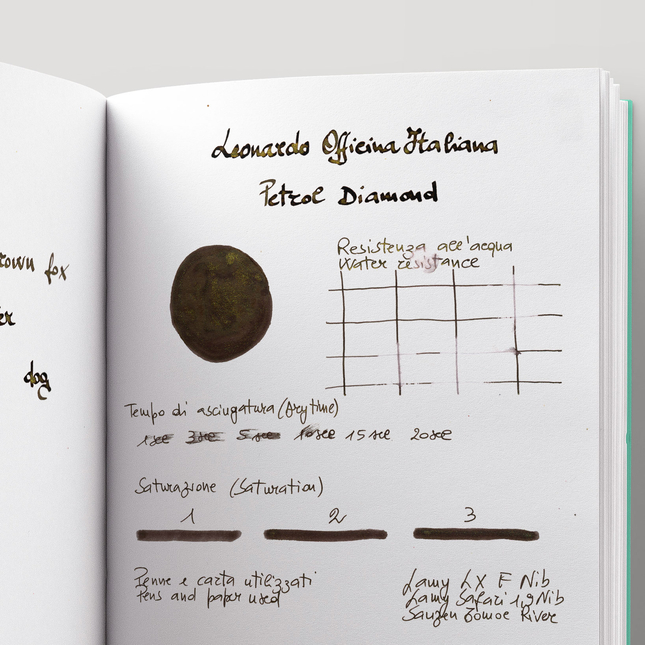 Leonardo Petrol Diamond è un inchiostro shimmering dal carattere intenso e contemporaneo. Le sue sfumature petrolio, arricchite da brillanti riflessi, donano alla pagina un’eleganza moderna e misteriosa.