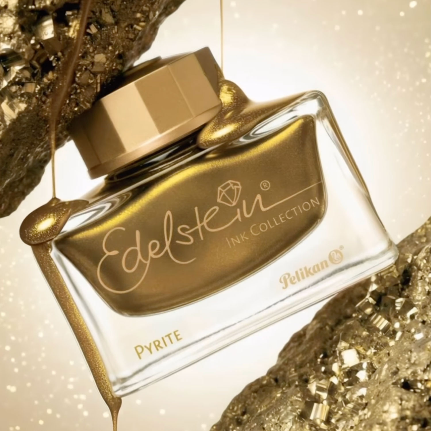 Pelikan Edelstein Pyrite (Ink of the Year 2026) è un inchiostro per penne stilografiche shimmer dal fascino prezioso, ispirato alla brillantezza della pietra Pirite. La sua tonalità grigio dorato metallizzato cattura la luce con riflessi scintillanti e dona alla scrittura un carattere deciso, elegante e contemporaneo.