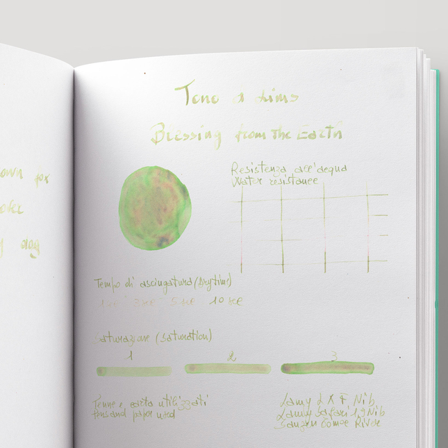 Tono & Lims Blessings from the Earth, Tenderness from the Sky Inchiostro 30 ml è un inchiostro per penne stilografiche della collezione Puddle Story Line contenuto in una bottiglia di vetro da 30 ml.