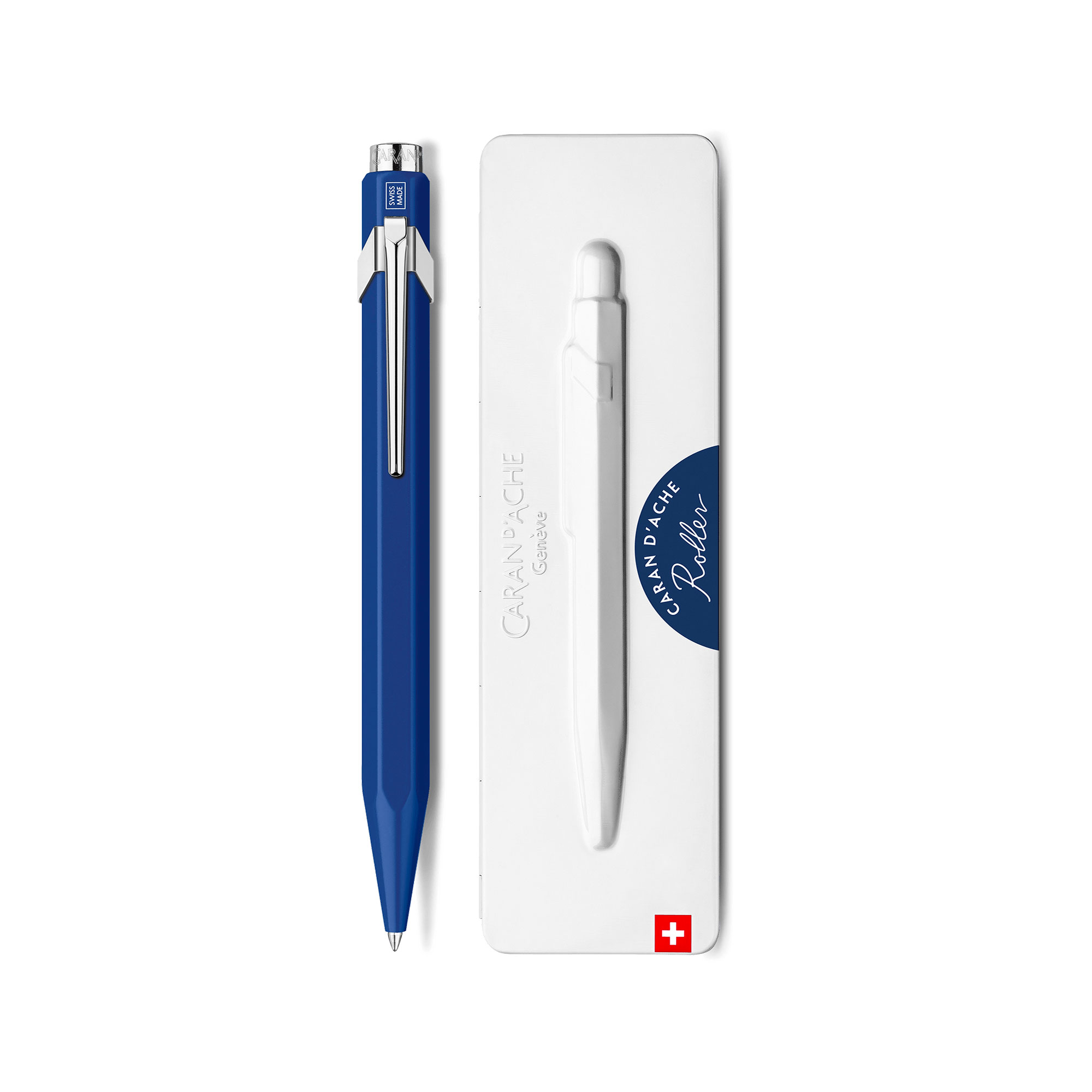 La penna roller Caran d'Ache 849 blu è realizzata in alluminio blu satinato. Unisce la semplicità d'uso di una penna a sfera con la scrittura fluida di una penna stilografica.