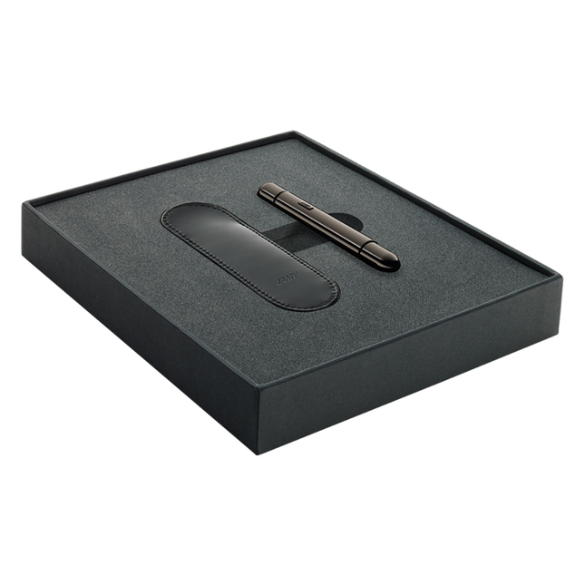 Il set include la penna Lamy Pico Lx Rutenio con refill Lamy M22 M nero e un portapenne in pelle, racchiusi in un’elegante confezione regalo. Un accessorio raffinato per chi cerca una penna compatta, funzionale e dal carattere inconfondibile.