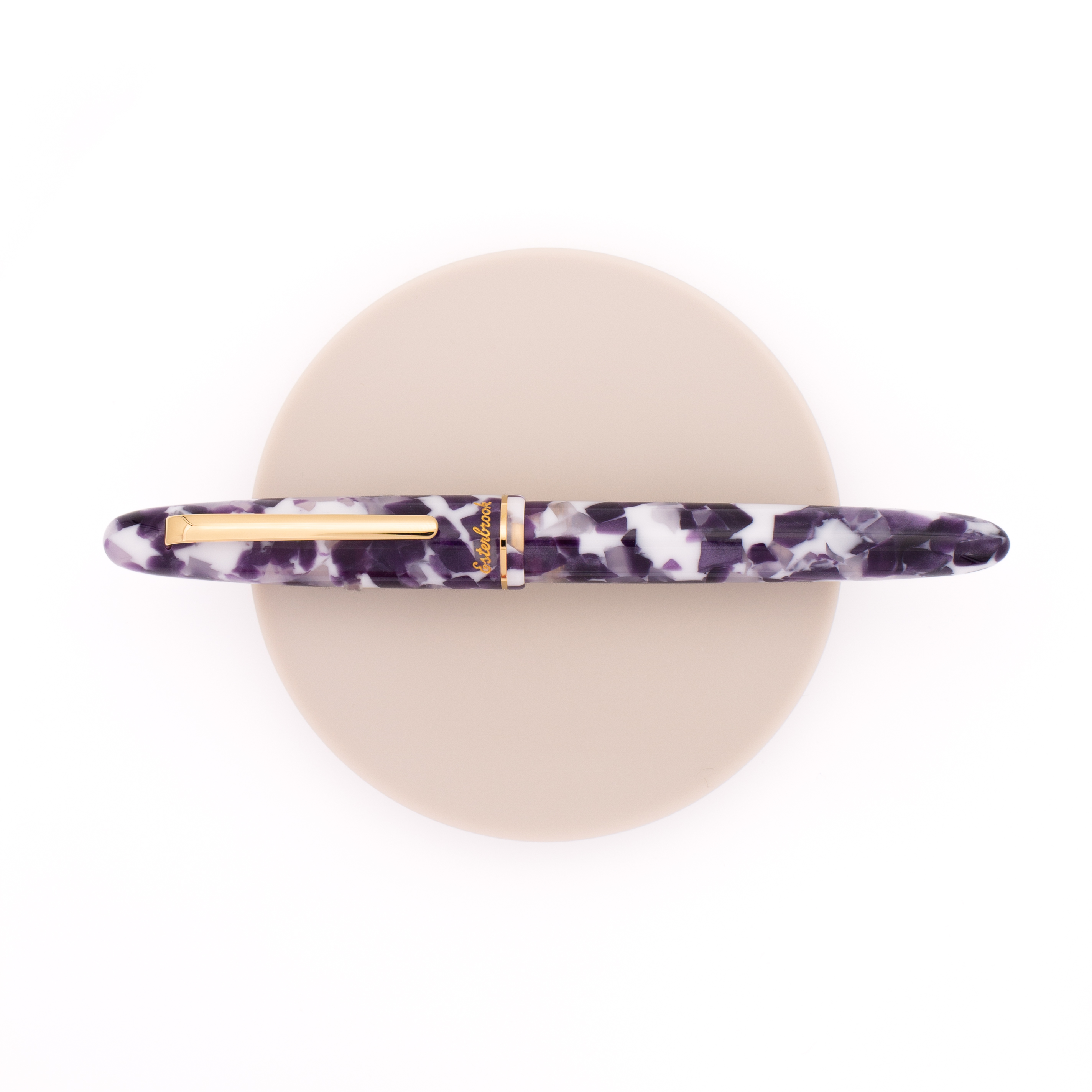La Esterbrook Estie Bestie Sugar Plum Purple è una penna stilografica dal carattere deciso e giocoso, ispirata alle sfumature profonde del viola uva. L’acrilico tornito, arricchito da delicate pagliuzze bianche, crea un affascinante contrasto visivo che dona profondità e movimento al colore.