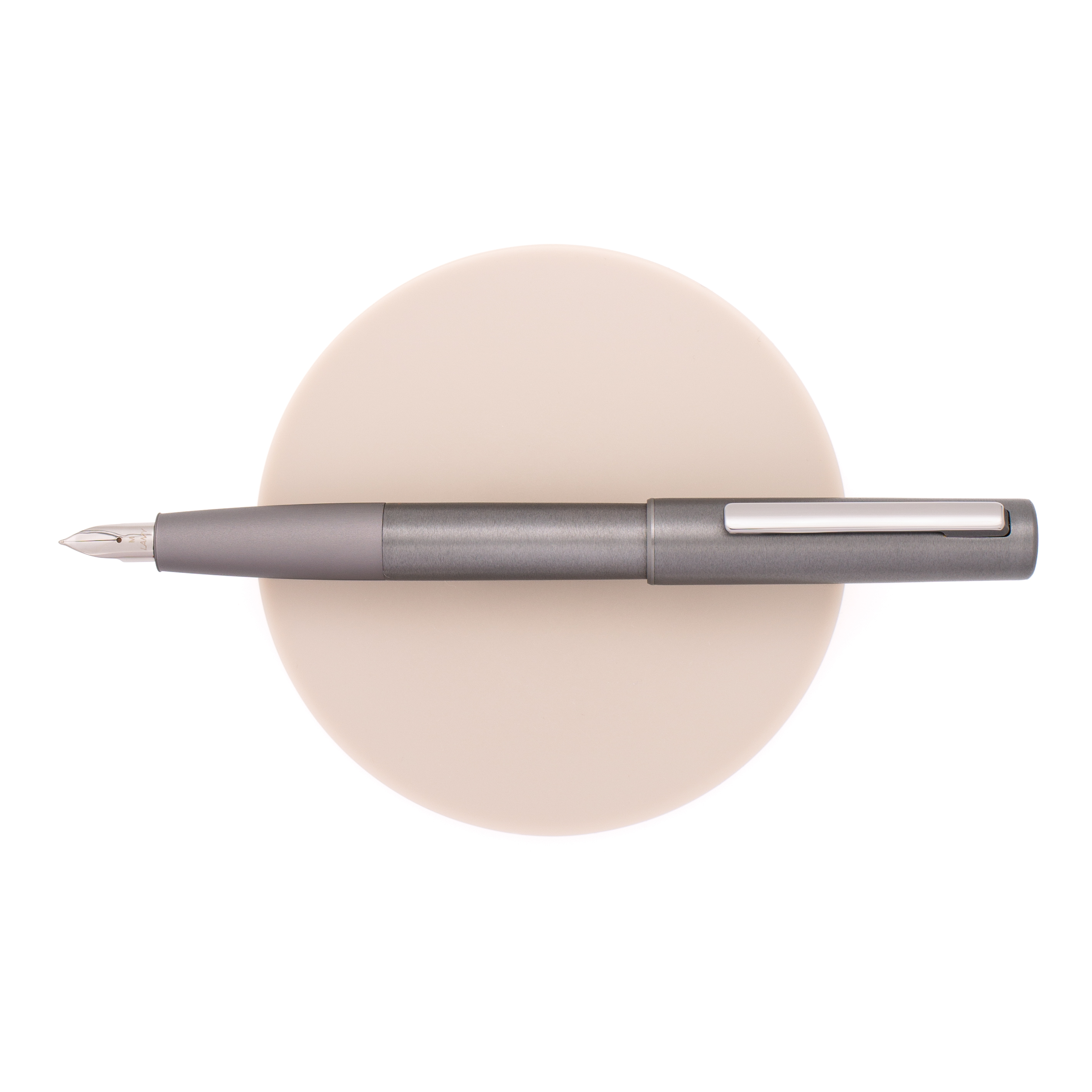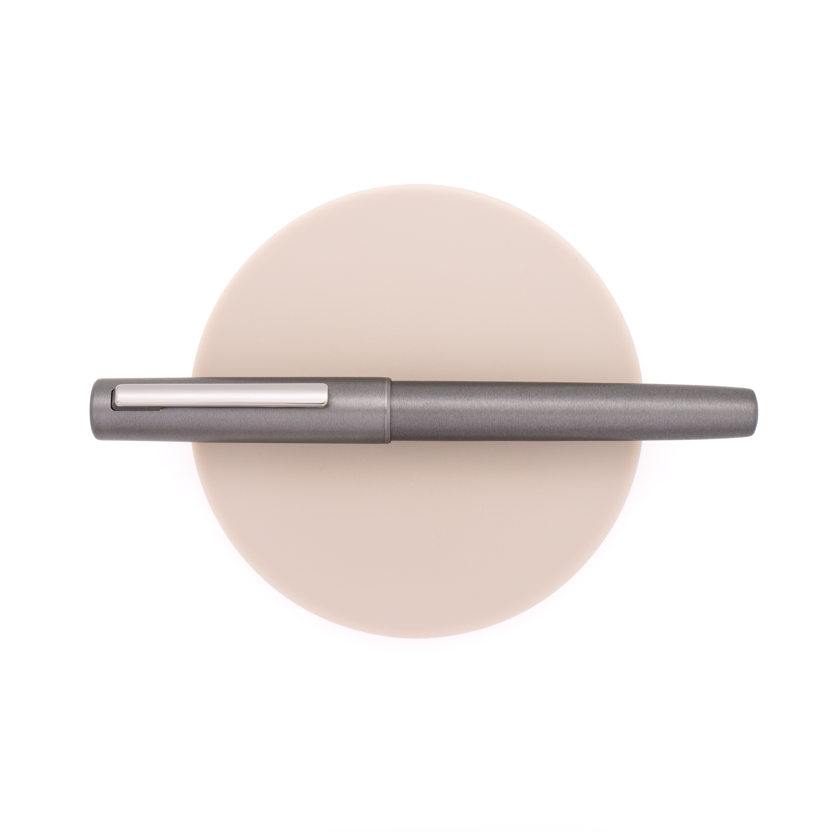 Penna stilografica in alluminio anodizzato grafite con pennino in acciaio. Design di Jasper Morrison, equilibrio perfetto tra comfort e minimalismo. Edizione speciale 2025.